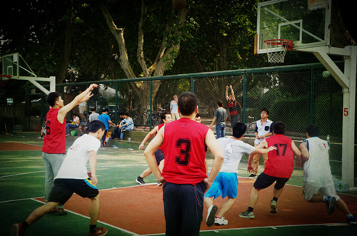 10月11日中午12:00,本部篮球场上人声鼎沸,一派热闹的景象,污漫