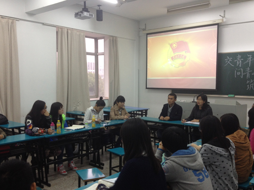 国洪梅老师首先就团的性质进行了解释,对团支部的定位和团支部书记的责任和义务进行了阐述。之后对团支部书记在工作中所应负责的推优、团日活动、班级日常思想政治教育等方面的任务进行了详细的解读,同时强调了作为团支部书记所应具备的综合素质和起到的模范带头作用。随后,大二年级团支书和各班团支书逐一向大家交流了自己工作的感悟和收获,并就大一团支书遇到的疑问和困惑进行了指导和解读。