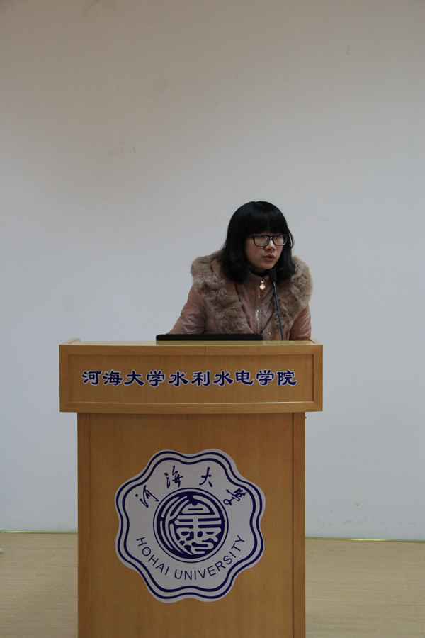 紧接着,赵志涵老师对2013年做了工作总结发言。赵老师指出2013年水电院研究生工作取得了丰硕成果,国家奖学金、潘家铮、张光斗等各重量级单项奖学金连连,这些成绩的取得离不开各位班长与党支书的支持。赵志涵老师还对水电院研究生2013年度开展的学生活动进行了表扬:在金水节系列活动中,水电院承办的河海达人获得了一致好评;在金水节闭幕式上水电院表演的惊鸿舞更是令人惊艳;在“学海争锋”学术交流活动中,博士、硕士积极投入参与交流;此外,本硕博、每月一动以及内部素质讲座等活动都取得了不错的成绩,收到了很好的效果。赵老师感谢学院领导一直以来对污漫
