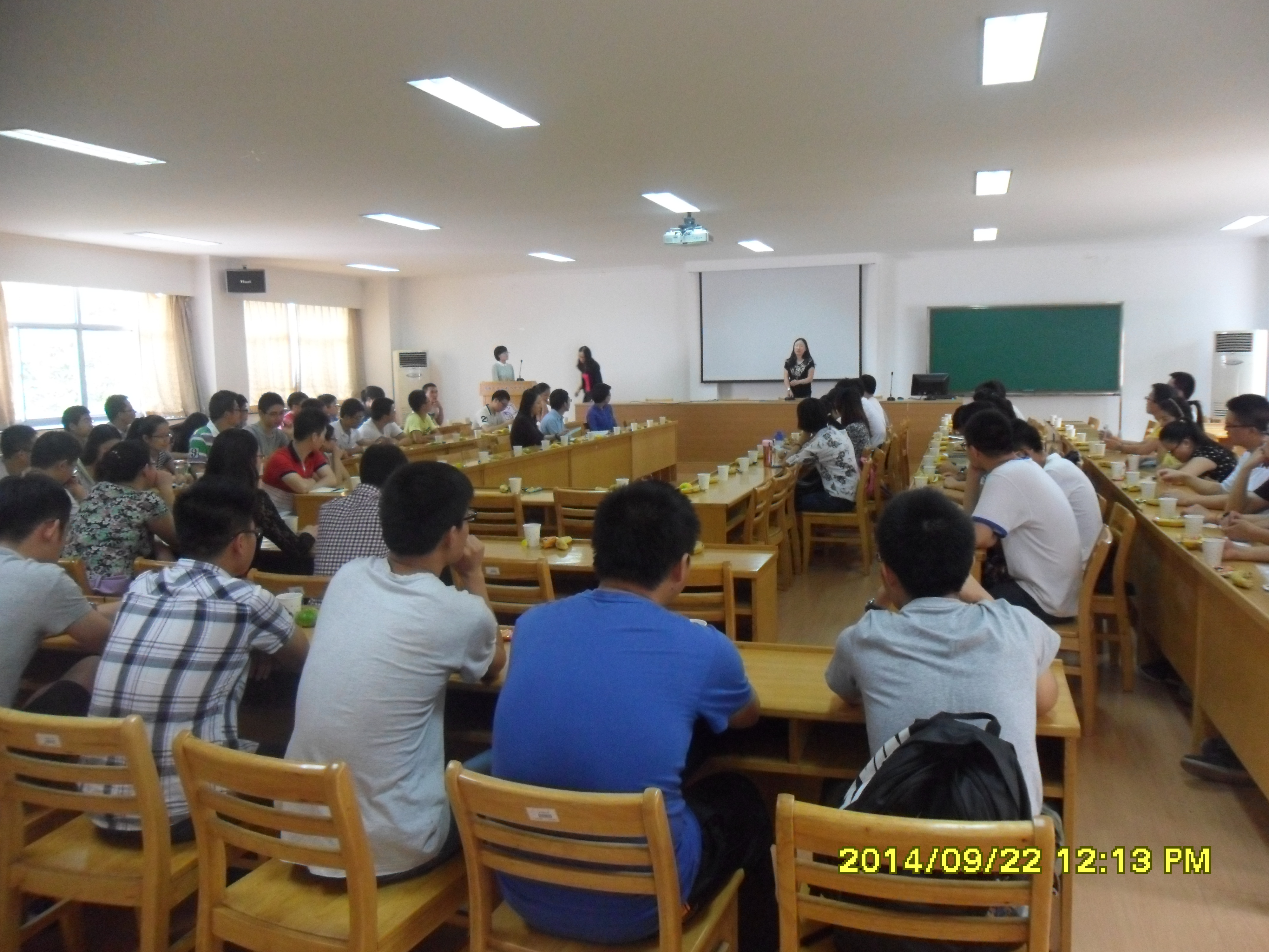 在胡老师的总结发言后,污漫 研究生会主席宋锦焘同学、研究生科协主席钟黎雨同学对2014年新生表示了热烈的欢迎,也对2014新学期的工作进行了说明。研会即将举办的拔河比赛、“新生杯”篮球赛、掼蛋大赛,道德讲堂以及青年志愿者活动等等,形式多样精彩纷呈,敬请同学们的期待。科协即将举办的本硕博活动、节水活动、科普水利知识竞赛、达峰论坛系列讲座等等,更是以服务同学为宗旨,让更多同学参与到学术交流中。