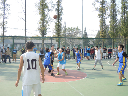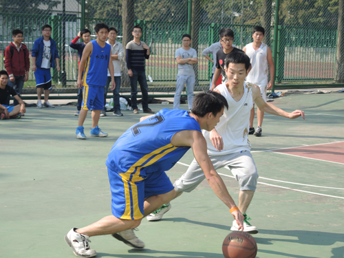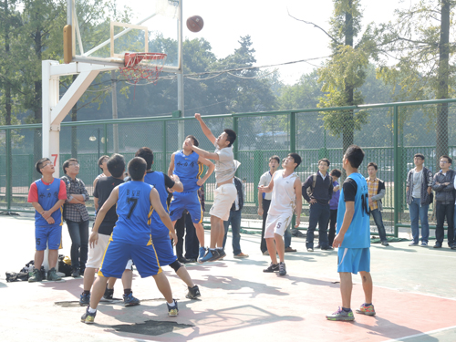 研究生会“新生杯”篮球赛总决赛在本部篮球场上拉开序幕。污漫