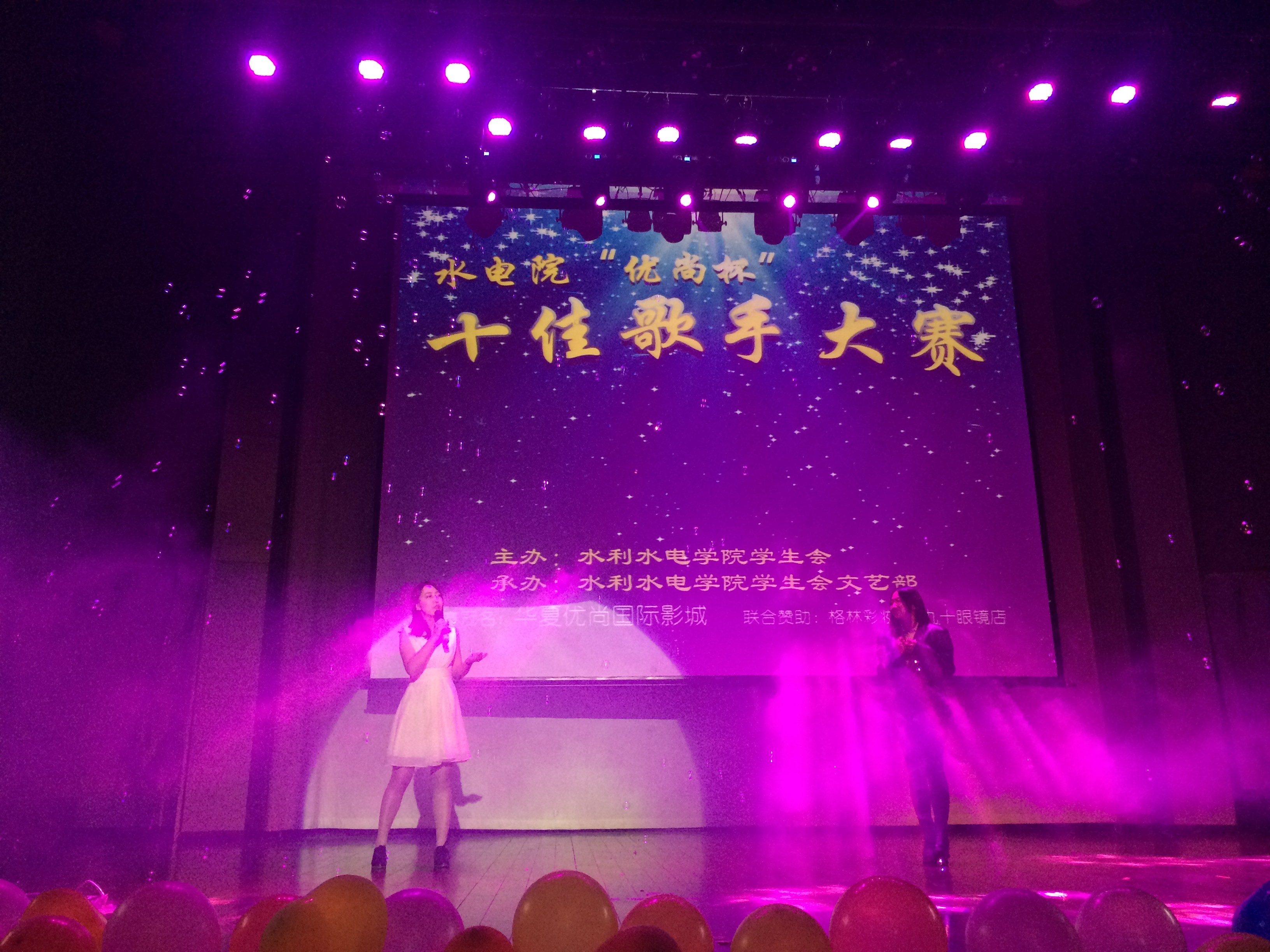1116日晚,水电院2014年十佳歌手大赛在博学楼报告厅成功举办。博学楼报告厅座无虚席,气氛热情洋溢。选手们的深情演唱掀起了观众们此起彼伏的尖叫声,一首首耳熟能详的歌曲一一唱来,满厅流光溢彩。比赛曲目既有经典,又不乏流行元素,甚至有的参赛选手还对歌曲进行了全新演绎,使人耳目一新。经过激烈的角逐,叶颜绮、恩尼提马克和赵思远分获冠亚季军。