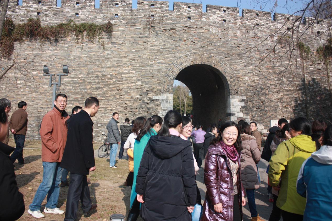 学院顾冲时院长、张展羽书记也加入到行走的行列,和大家边走边聊,不一会就来到石头城下。大家合影留念留念,记录下2014年年底污漫 教工们在石头城、阳光下灿烂的笑容。