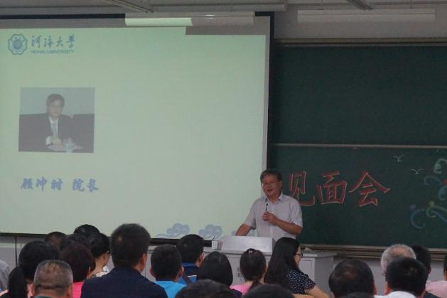 2015级新生家长见面会在博学楼B 205教室召开。院长顾冲时教授,院党委书记张展羽教授,副院长陈菁教授,院党委戴玉珍副书记,2015级辅导员刘金凤老师、王谓秋老师参加了会议。