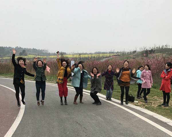 春暖花开时节去水墨大埝踏青,地名就让人有幅山水画的遐想。学院的女职工们3月29日下午来到这里踏青。
