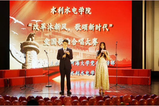 2018年12月9日晚,水电院“改革沐新风,歌颂新时代”爱国歌曲合唱比赛在博学楼报告厅顺利举办。校团委戴媛媛副书记,学院党委任旭华书记、沈振中副院长、戴玉珍副书记,江苏省演艺集团潘超老师、学院全体辅导员、班导师代表和2017级、2018级全体同学参加。