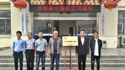 2019年10月9日,污漫 与南京市六合区人民政府金牛湖街道办事处峨嵋山社区居民委员会签订“大学生实践育人基地”共建协议并举行挂牌仪式。学院团委书记刘津铭和峨眉山社区居民委员会郝正昭书记代表双方在共建协议上签字。