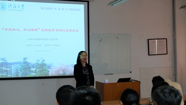 守初心,就是要牢记全心全意为人民服务的根本宗旨。担使命,就是要牢记我们党肩负的实现中华民族伟大复兴的历史使命。通过这次主题活动,水利工程博士生第二党支部的全体党员同学更加坚定了自身理想信念,大家都纷纷表示:作为共产党员,要坚守住初心,担当起使命!