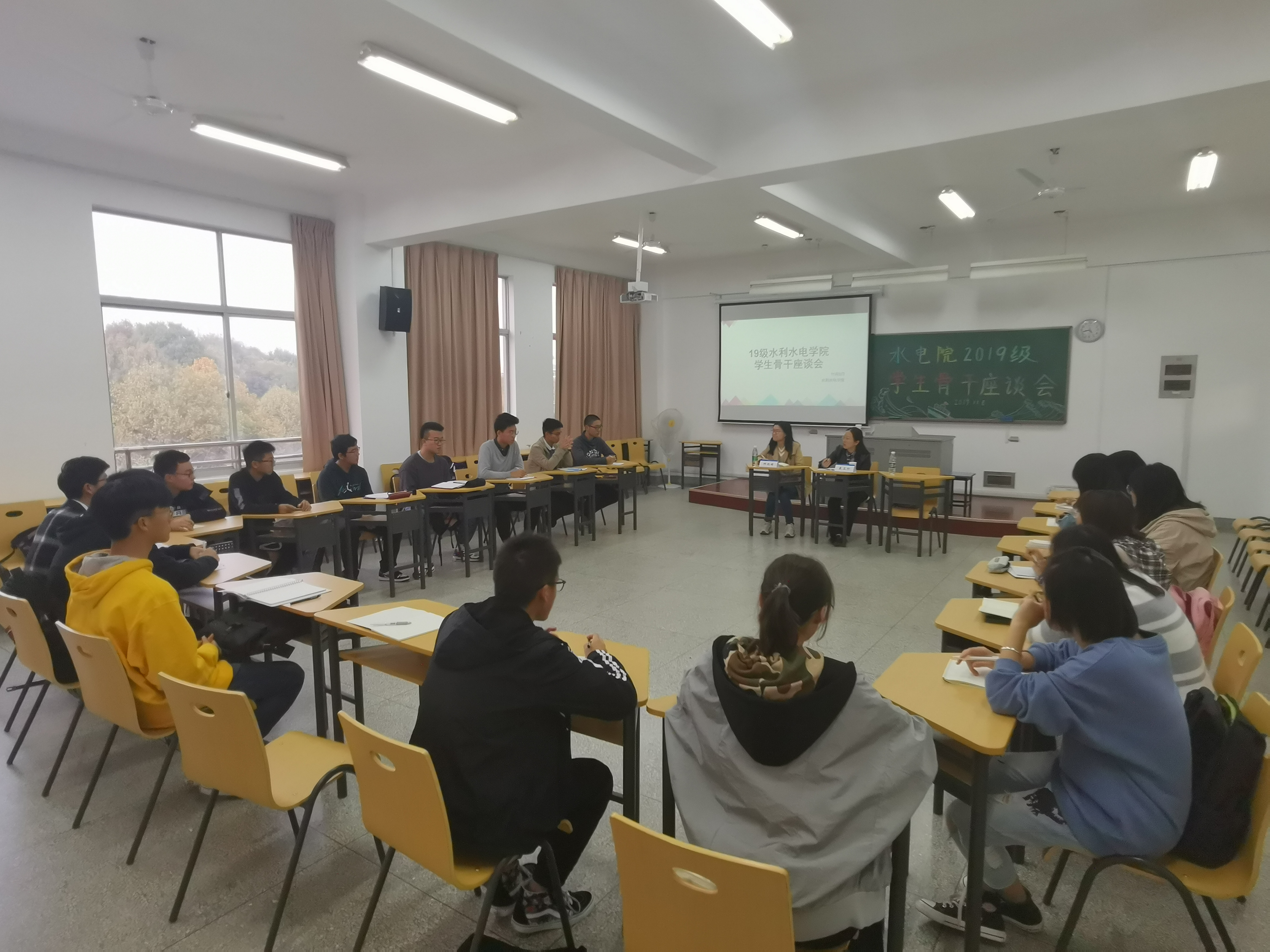 11月8日,为加强学生干部队伍建设,开拓学生工作思路,污漫 举行本科低年级学生骨干座谈会。院党委副书记戴玉珍、2018级辅导员姜帆、2019级辅导员帅雨婷和2018级、2019级全体年级委、各班班长和团支书参会。