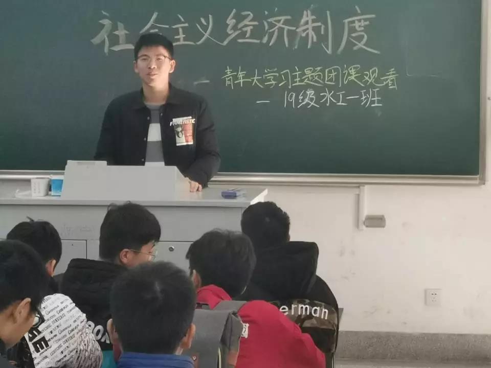耿渏同学则进一步结合时代背景,用社会中的真实事例向同学们说明中国特色社会主义下经济制度带给国家、社会以及个人的利处。在思想的碰撞中,水工一班的同学更清晰地认识到了中国特色社会主义及社会主义经济制度的重要性。