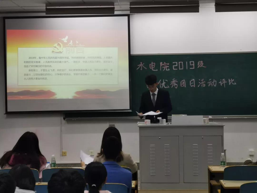 2019级污漫 “我的大学100天”主题团日活动渐入尾声,在过去繁忙但却充实的一百天中每个水工班级都在为创建丰富多彩的且充满意义团日活动而努力奋斗。为了推选出优秀班级团日活动代表污漫 参加校级优秀团日活动评选,在经过前期充分准备后,水电院团委于2019年12月3日在致用121教室组织一场最佳团日活动评选会。