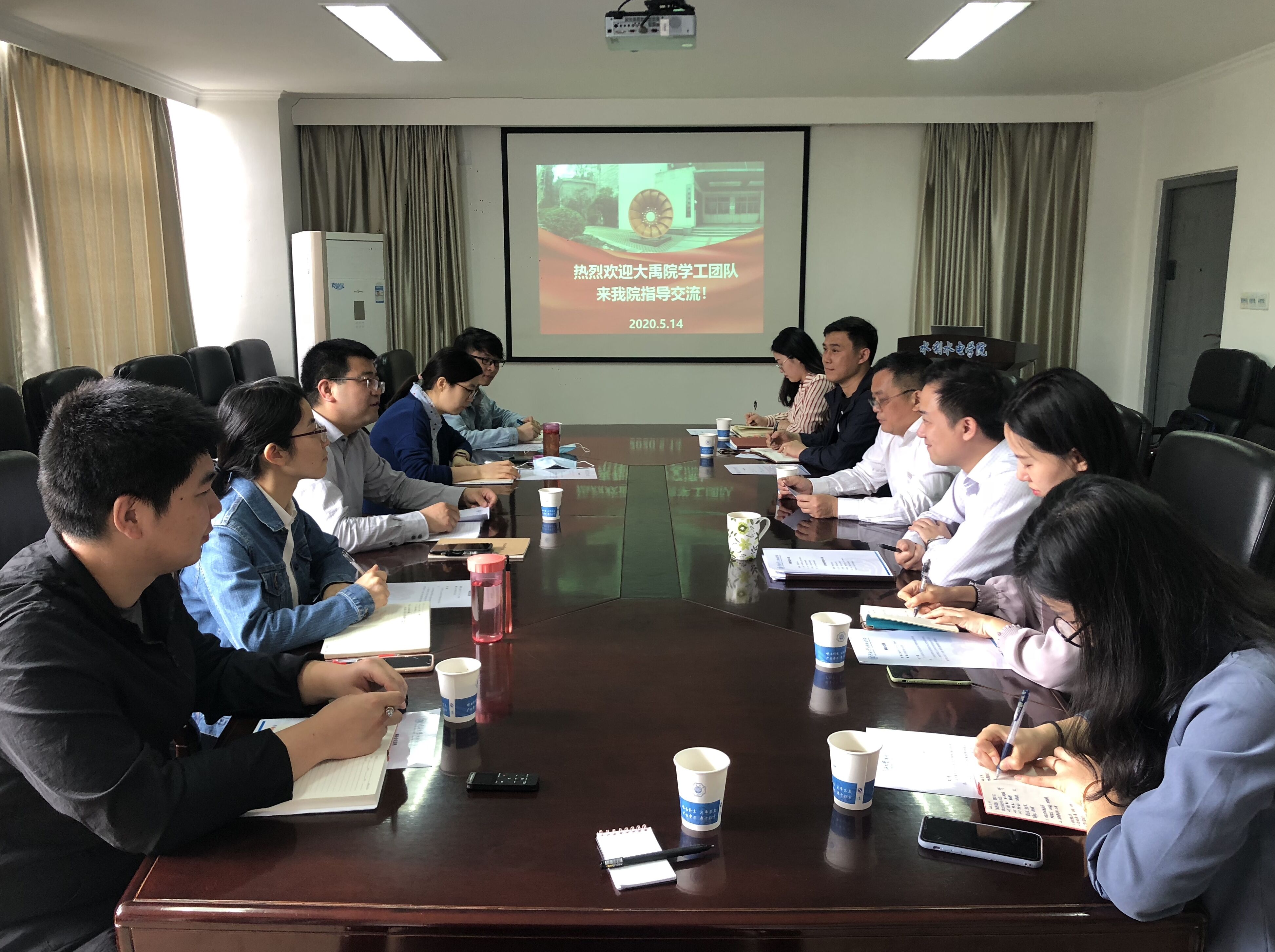 5月14日,大禹学院党委书记吴洪彪一行5人来污漫 调研,学院党委书记任旭华、党委副书记王方出席座谈会。