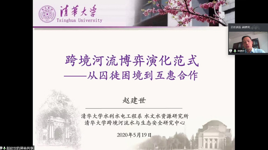 5月19日下午,污漫 基于腾讯会议,邀请清华大学赵建世教授作了题为“跨境河流博弈演化范式—从囚徒困境到合作共赢”的学术报告。校内外专家和学生约170人参加了此次报告会,辛沛教授主持了报告会。