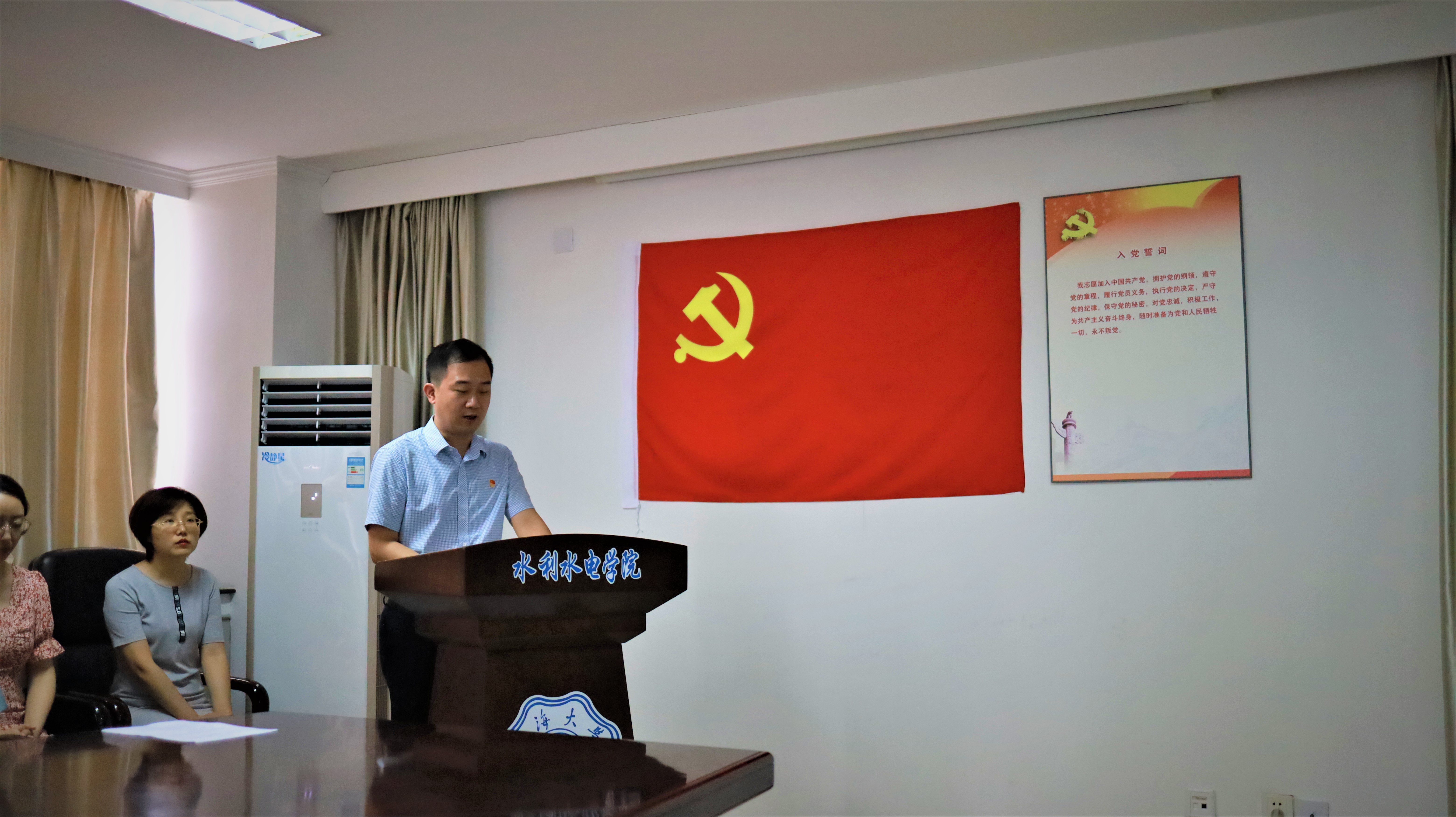 随后,预备党员代表裴子玥同学进行了发言,表达了对党的深厚感情,并向组织表达了将坚决践行入党誓词的决心:要不断提升自己的思想政治修养,不断提高自己为人民服务的本领和能力,以及自己在专业领域的精深程度,争取做到独当一面,为社会贡献自己的青春和力量!