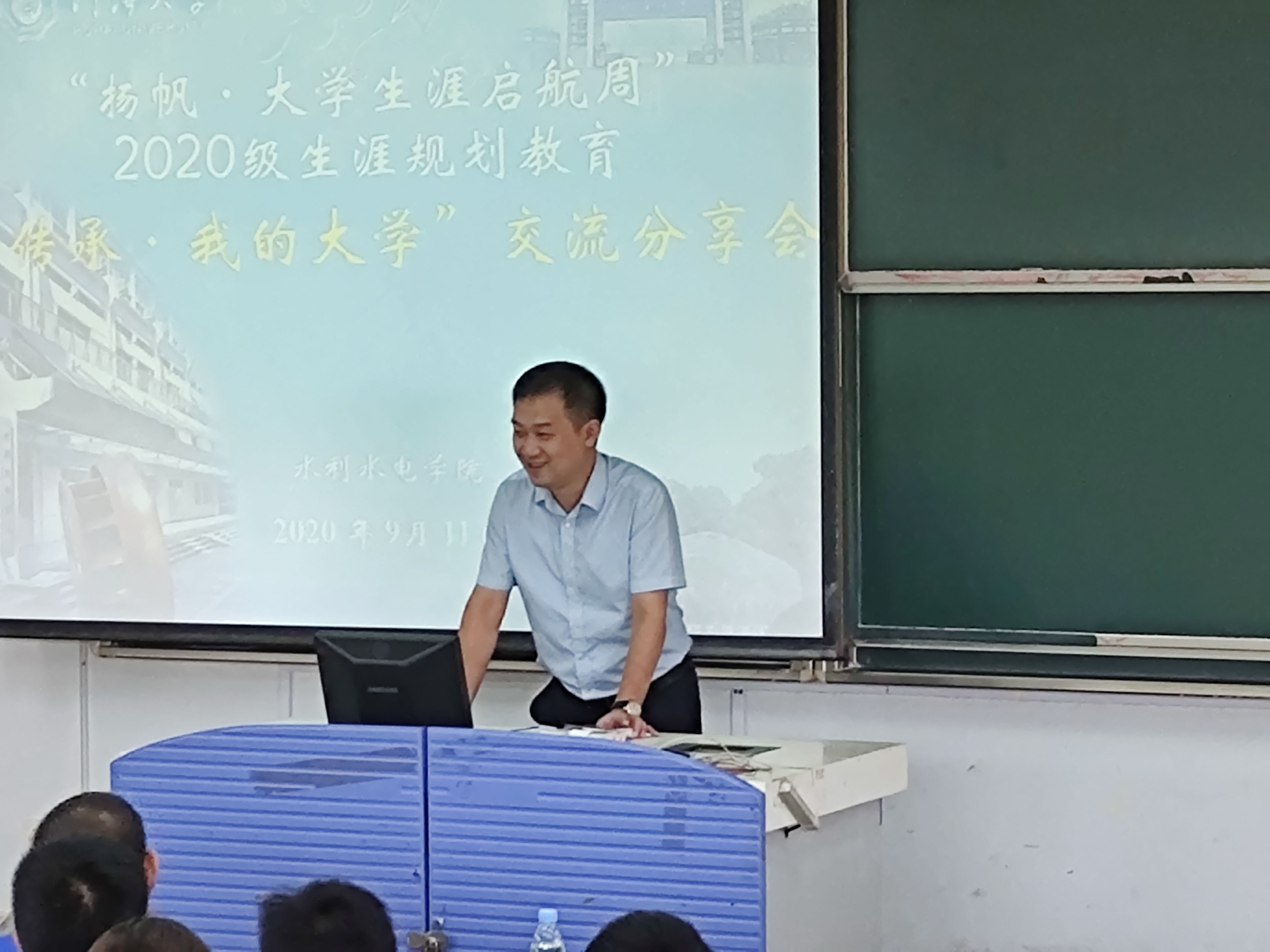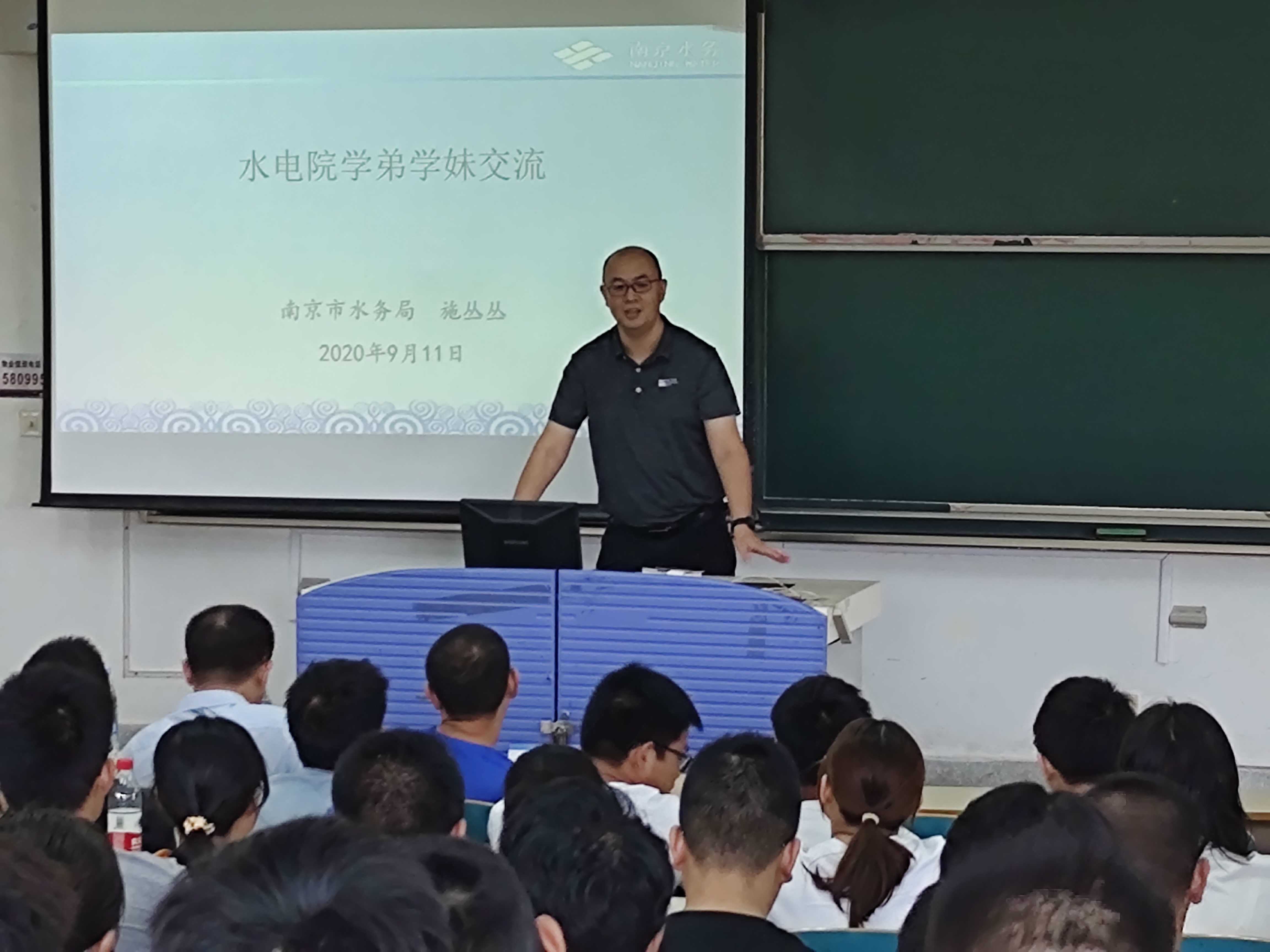 9月11日,2020级扬帆·大学生涯起航周活动之“传承·我的大学”交流分享会在江宁校区高B201如期举行,2020级全体同学以及辅导员参加分享会。分享会邀请污漫 2003届校友、南京市水务局基本建设和科技处副处长施丛丛,三峡电能(湖北)有限公司副总经理卞韬略主讲,院党委副书记王方主持。