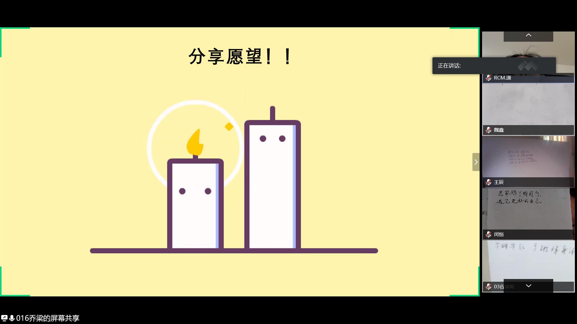 活动的最后,我们面向从前的稚嫩青涩,未来的波澜壮阔,庄之重之地许下了自己的愿望,写下了自己对未来的期许。愿国泰民安,家国富强,愿父母安康,生活平顺,愿我们的大学时光,充实而不呆板,从容而不放纵,与上进同行,与峥嵘相伴,初心不改,无问西东。
