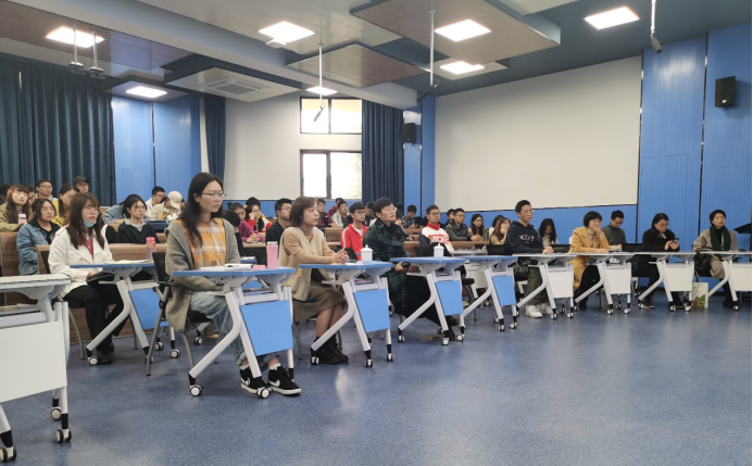 党委副书记王方主持访谈,百余名研究生、本科生代表聆听了访谈会。