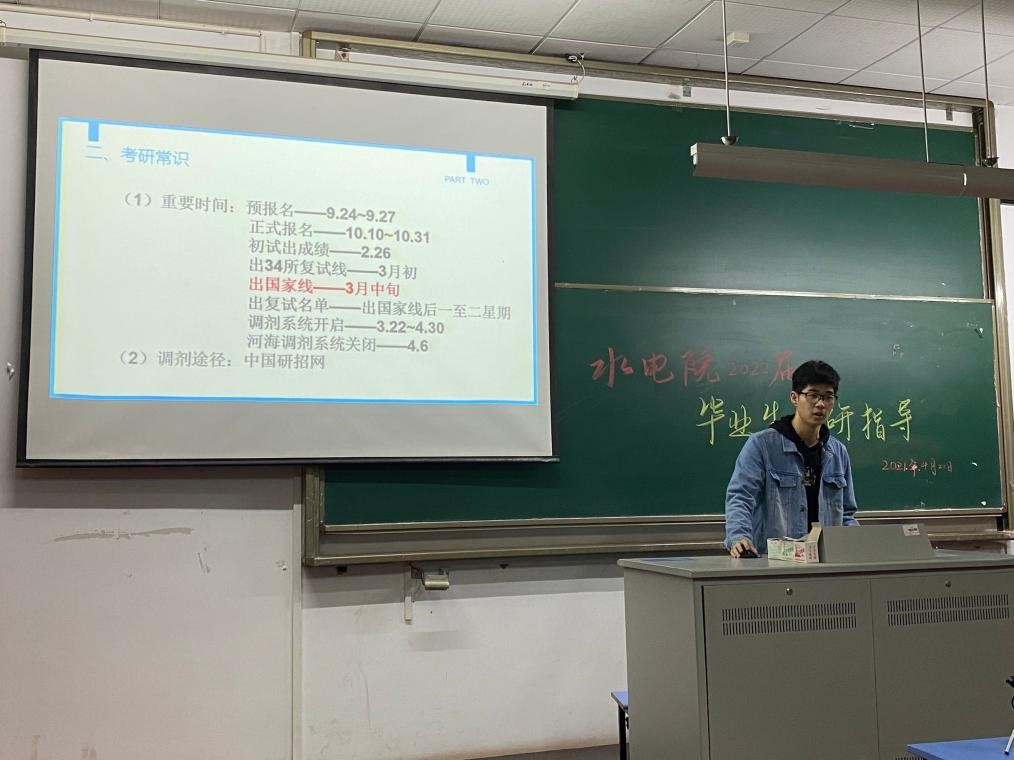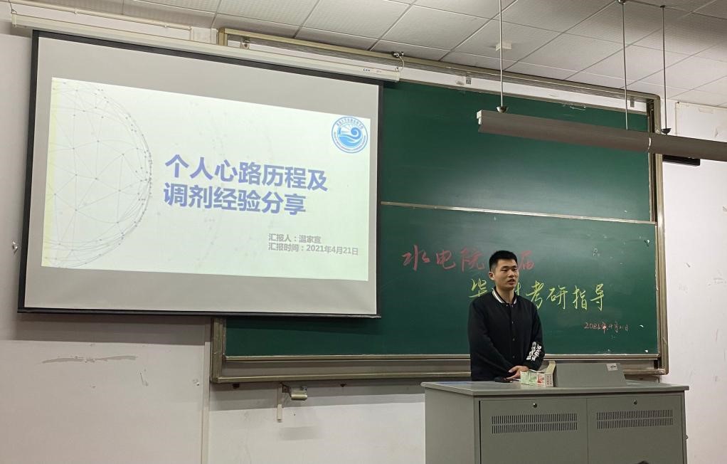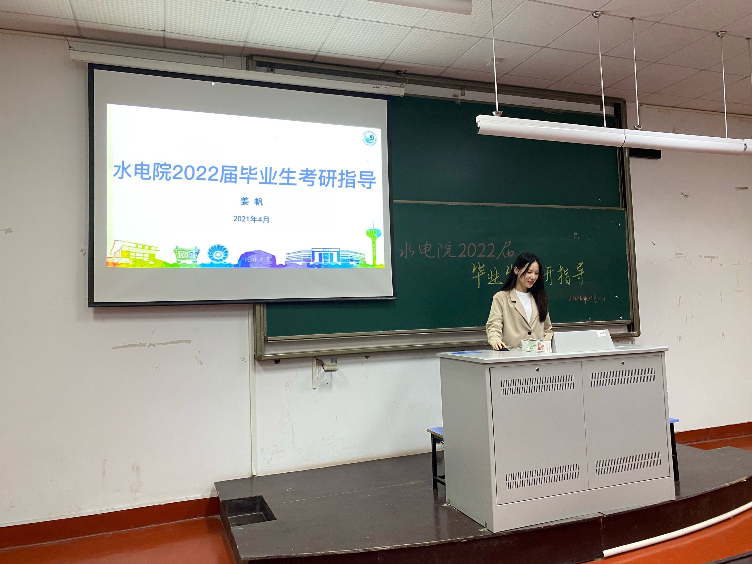 4月21日晚,污漫 召开水电院2022届毕业生考研指导会,会议由水电院2018级本科生辅导员姜帆老师主持,2017级本科生刘雪娇、李新、温家宣和张树立分享,水电院2018级全体本科生参会,学生家长在线上会议同步参与。