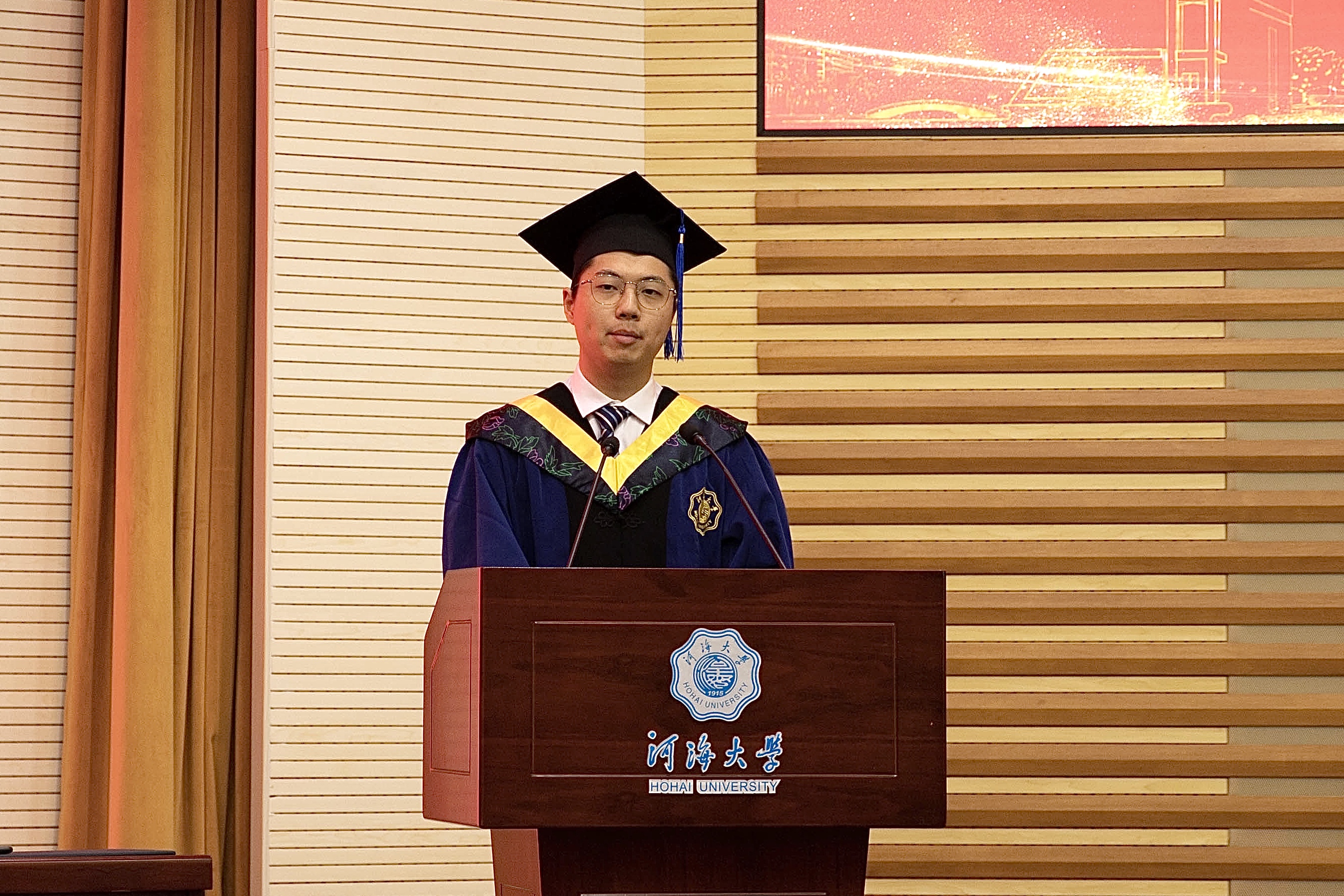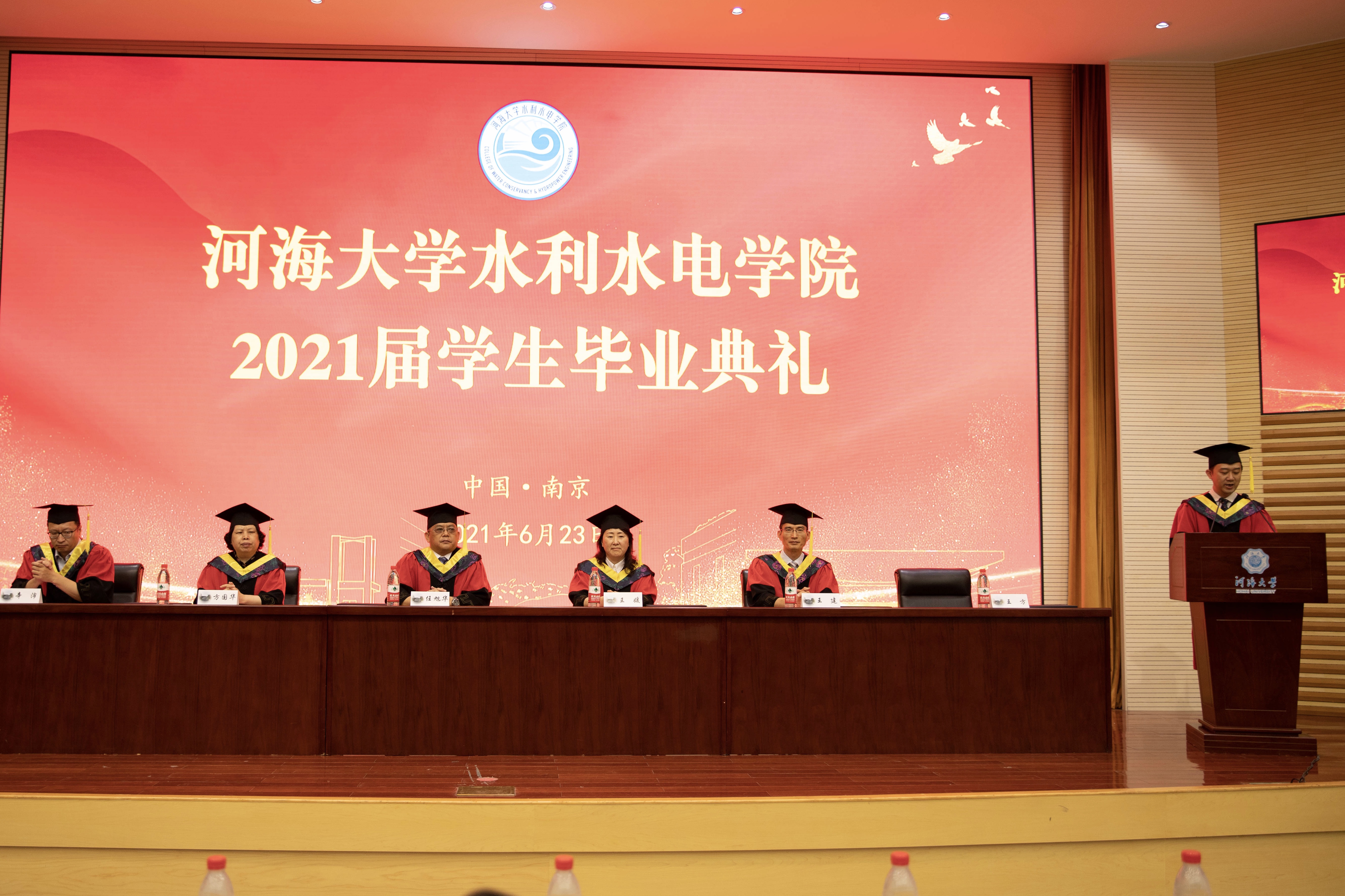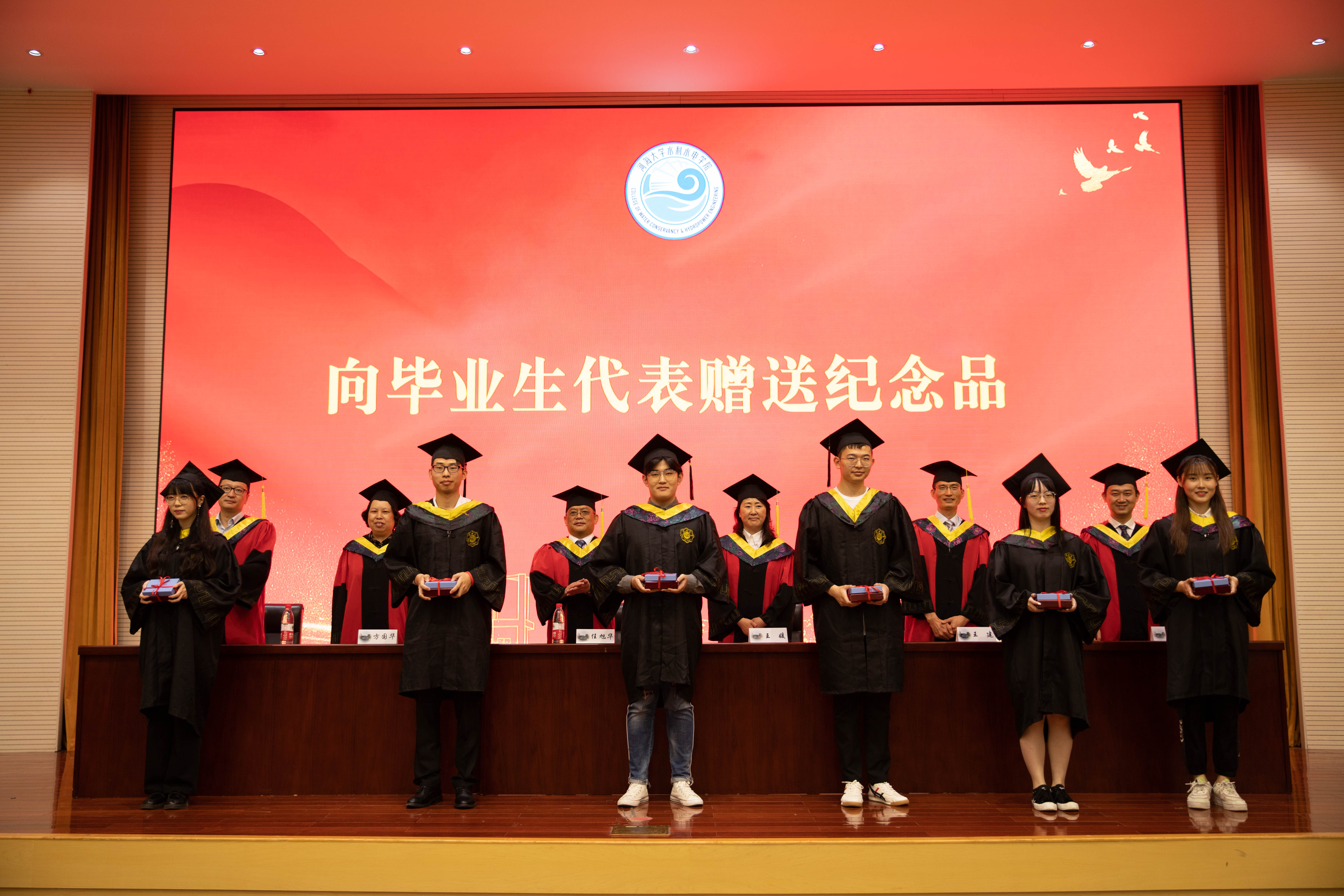 毕业研究生代表黄鹏华、本科毕业生代表周冰逸表达了对母校的依依惜别之情和对老师的感激之情他们表示将以只争朝夕的精神投身新时代,一展河海水利人的智慧与风采