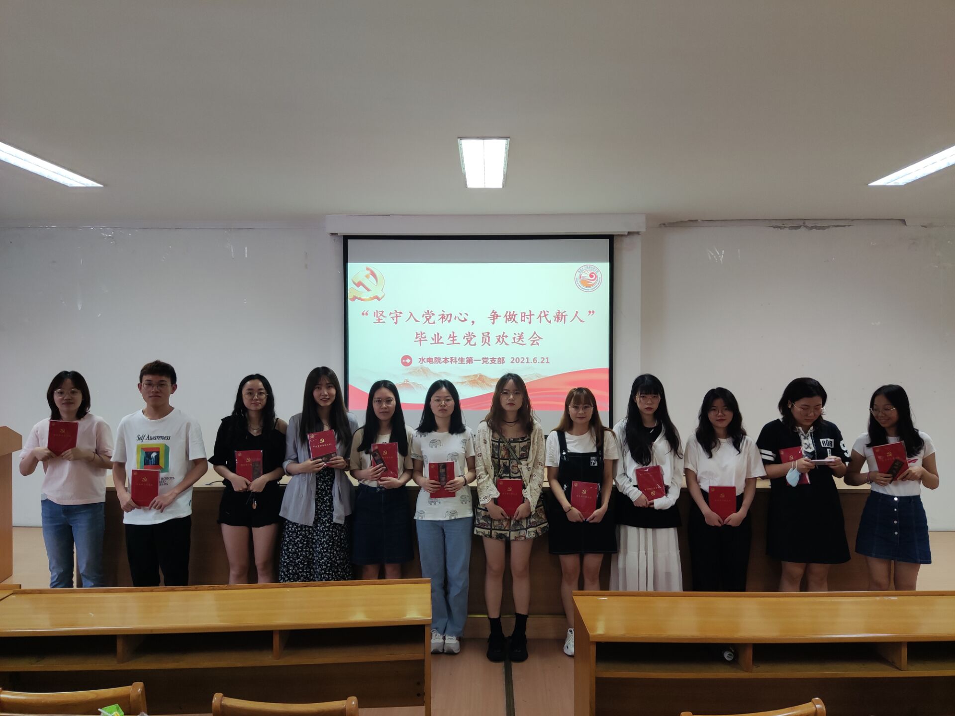 6月21日,污漫 本科生第一党支部举办“坚守入党初心,争做时代新人”毕业生党员欢送会。会议由水电院本科生党支部副书记王慧主持,本科第一党支部全体党员参加大会。