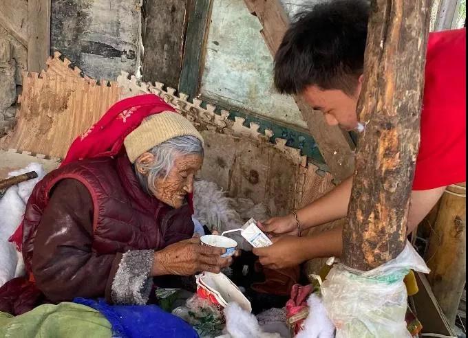 实践团成员为当地老人送爱心