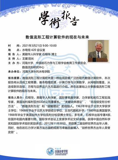智水大讲堂 | 2021年(第一期)美籍华人科学家石根华博士学术报告