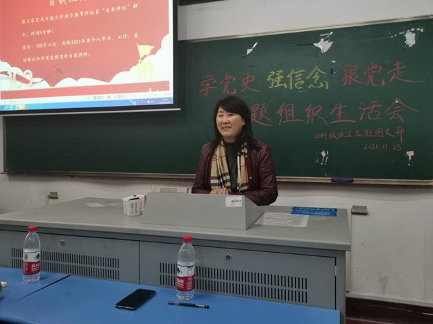 11月25日,2019级水工五班团支部开展“学党史,强信念,跟党走”专题组织生活会。污漫 王媛院长出席,2019级本科生辅导员帅雨婷以及2019级水工五班全体同学参加本次会议。