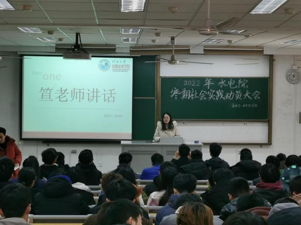 1月12日,污漫 举办2022年寒期社会实践动员大会。学院团委书记笪步源、2021级辅导员侯开智出席,2020级、2021级学生参加。