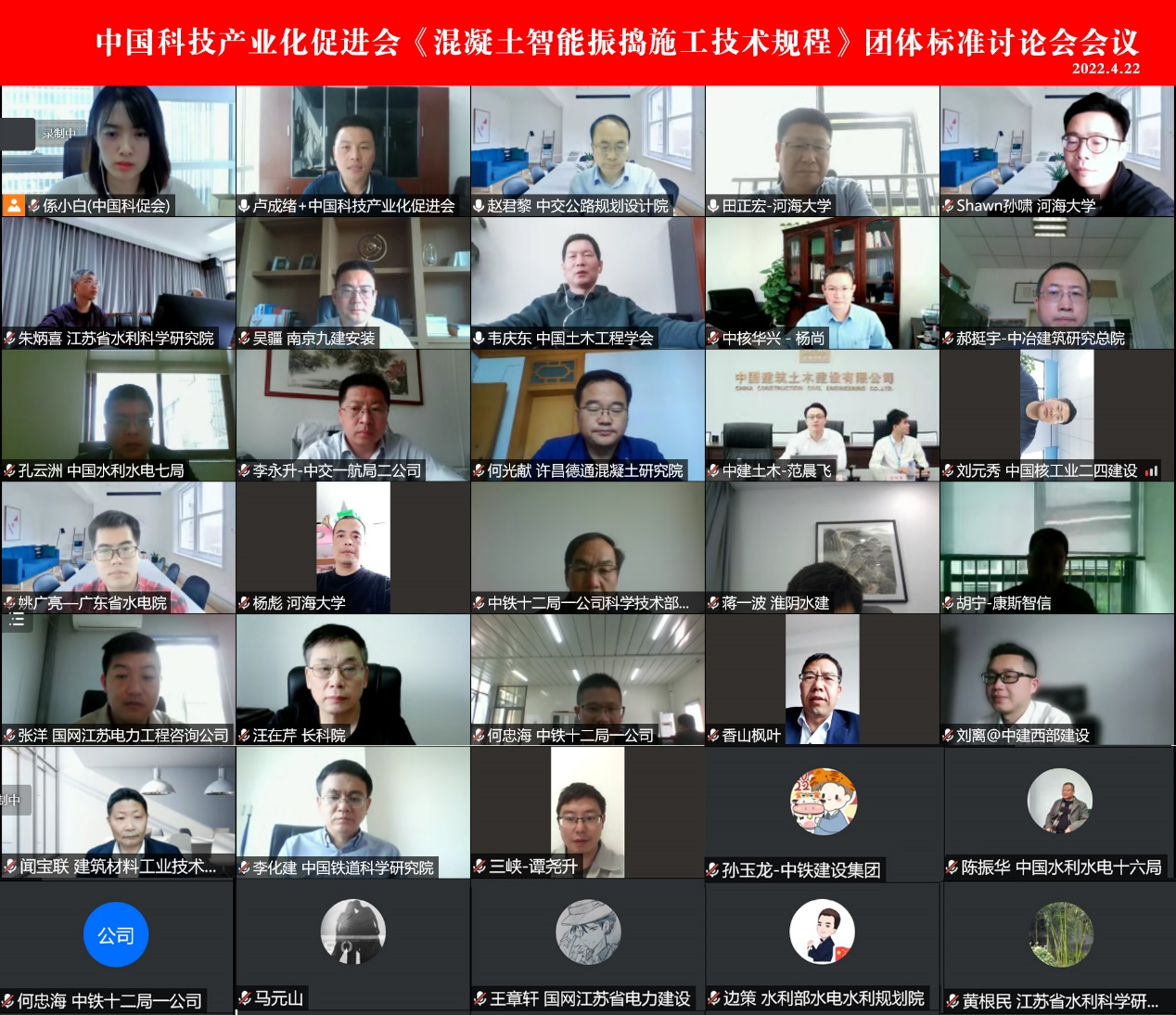 4月22日,由中国科技产业化促进会组织,污漫 与中国水利水电第七工程局有限公司联合起草的《混凝土智能振捣施工技术规程》团体标准(征求意见稿)专家研讨会在线召开。