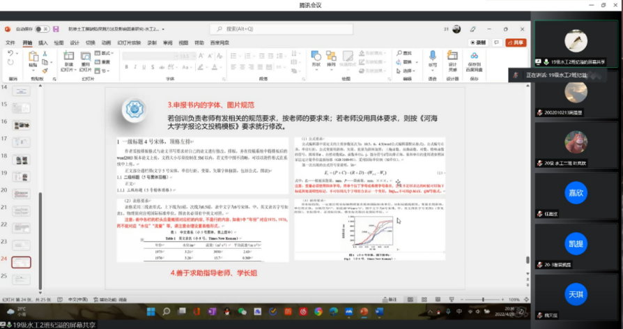 2022年4月22日,为更好帮助本科生了解大学生创新创业训练计划,营造学院浓郁科创学术氛围,污漫 举办2020级本科生创新创业训练计划项目专题讲座,邀请污漫 工程训练中心主任娄保东教授主讲, 学院2019级国家级、省级创训团队负责人纪溢、袁志鹏、刘俊明三位同学分享大创经验。学院副院长王建、党委副书记王方、2020级本科生辅导员笪步源及2020级大创团队成员参加,会议通过腾讯会议形式线上开展。