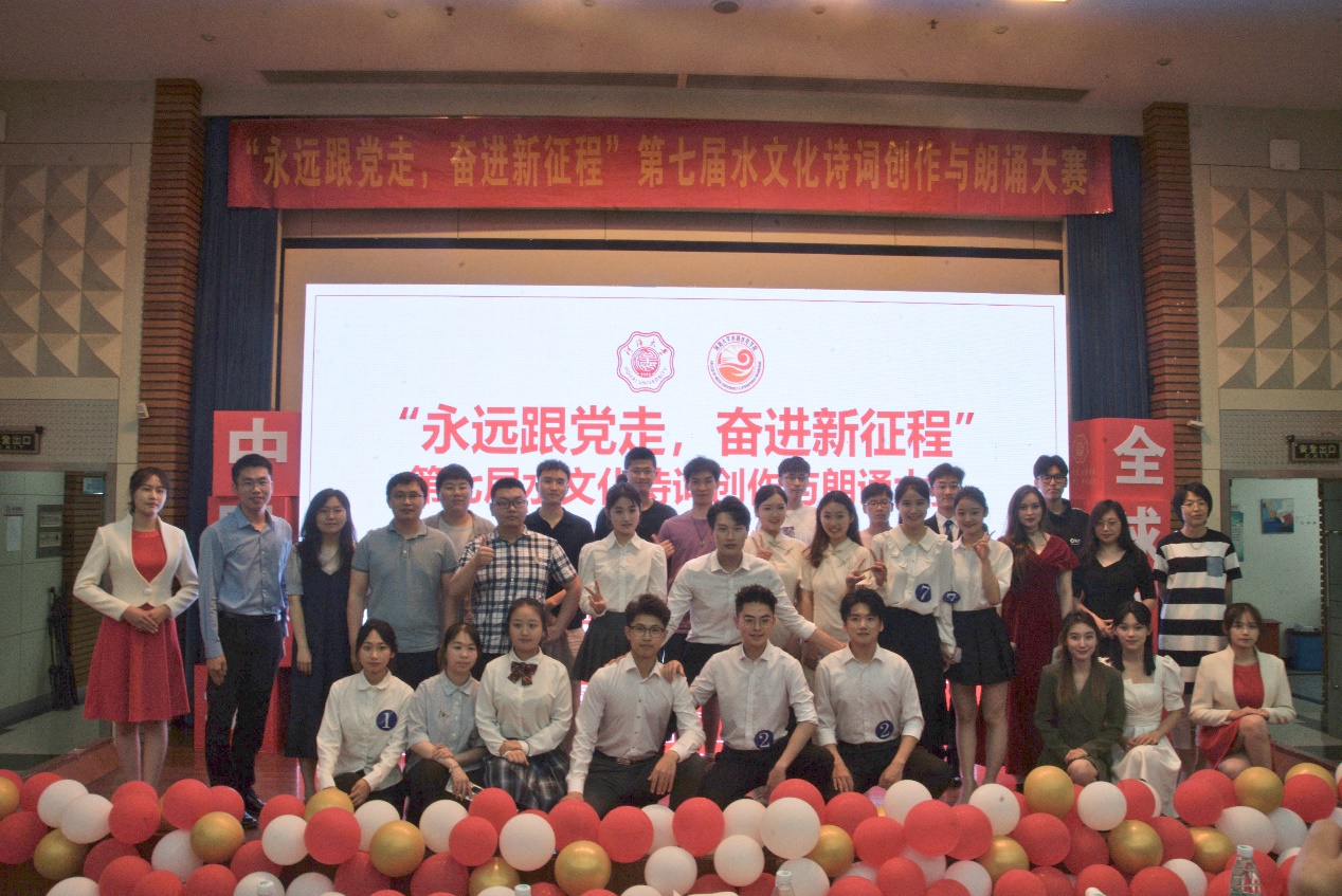 穿越中华民族悠久灿烂的历史文化长廊,诗词寄托着我们对党对水利事业的无限热爱。今天我们高唱凯歌走向复兴,“永远跟党走”步伐流畅;今天我们手挽着手奔向富裕,“永远跟党走”誓言响亮。水文化诗词创作及朗诵大赛作为污漫 文化传承的传统活动之一,自举办就深受师生喜爱,在为来自全校不同学院的学生提供交流的平台,鼓励河海水之子们展现诗词风韵与风骨的同时,也推进了“水文化”精神的传承,培养学生综合素质与时代精神契合,弘扬新时代水利人的精神品质。在所有选手及老师的共同努力下,本次“永远跟党走,奋斗新征程” 第七届水文化诗词创作与朗诵大赛圆满结束。(文/袁晨禹;图/李茜、朱弘霖、罗毅、陈泽博、廖培钧)