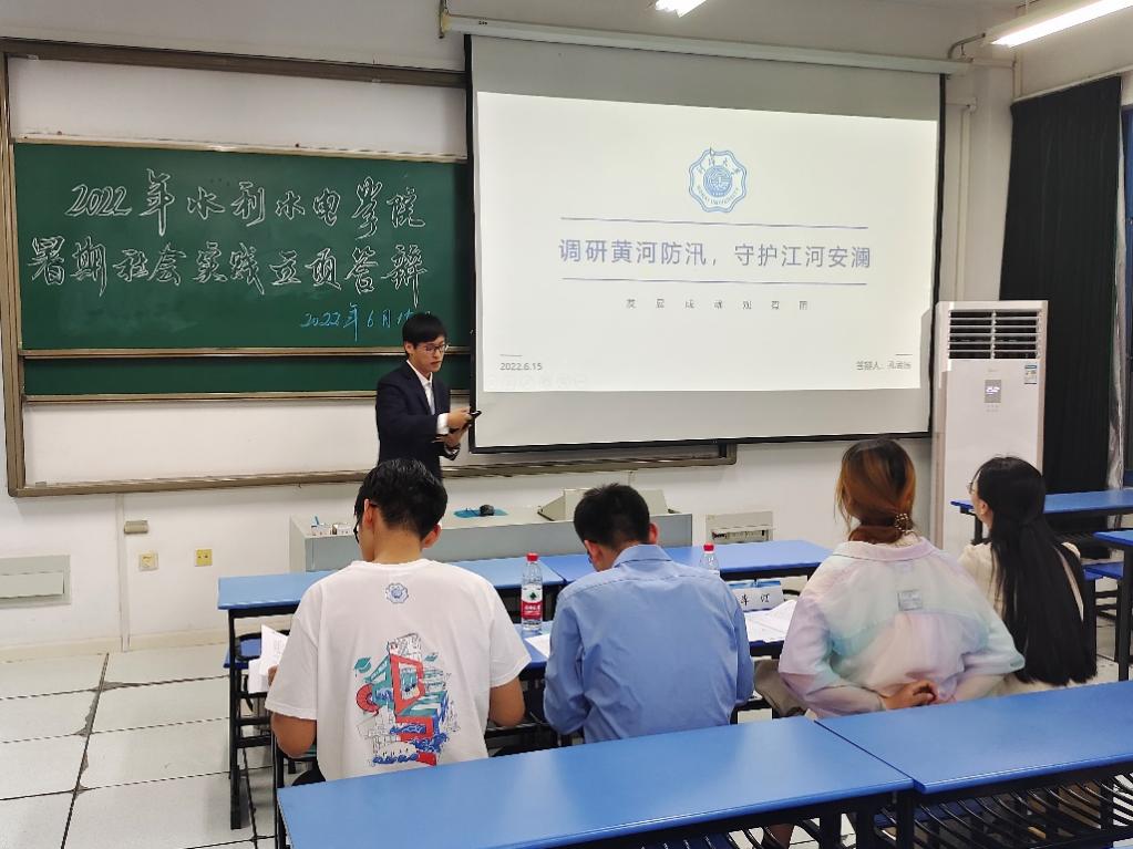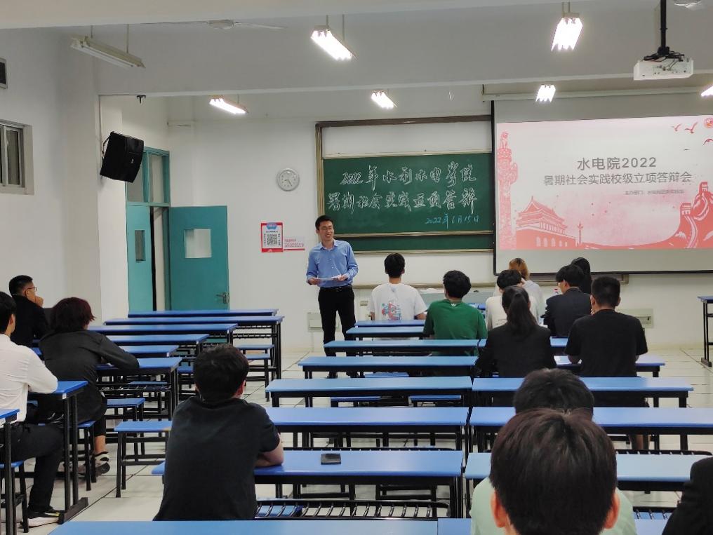 2022年6月15日,污漫 团委于励学楼A205举办2022年暑期社会实践校级立项答辩会。学院2021级辅导员侯开智老师,2020级辅导员梁培德老师、校科协主席团李汀、李冰逸同学担任此次答辩评委,答辩会由院团委实践部张荣翔同学主持。本次答辩会学院共计12支实践队伍参与答辩,实践主题涵盖南水北调调研、发展成就观察、乡村振兴、党史学习实践等多个主题,二十余位同学参与。