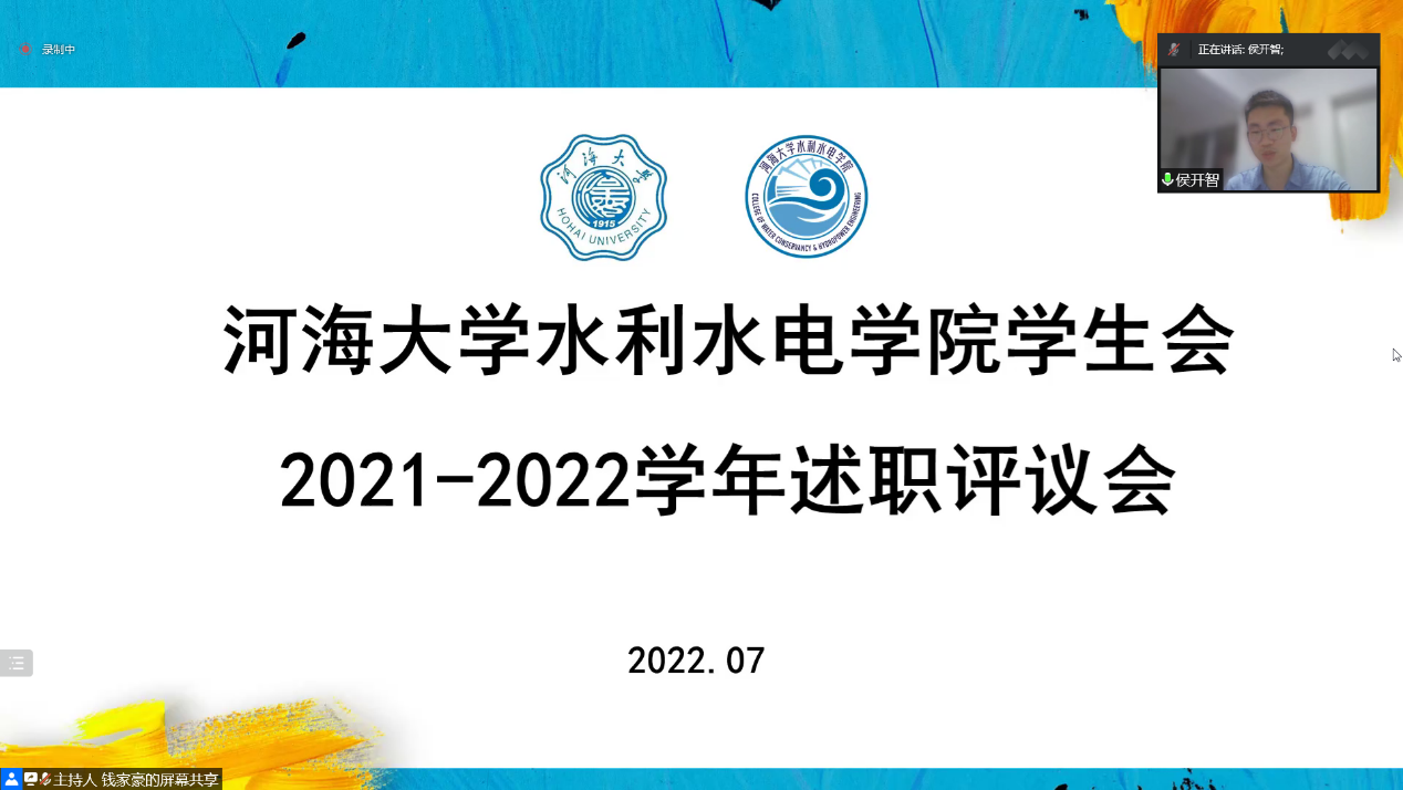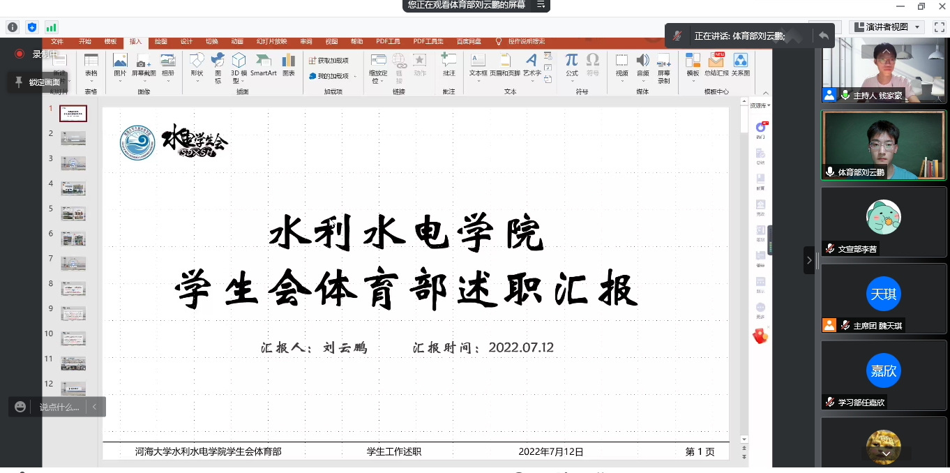 7月12日19:00,我院学生会2021-2022学年第二学期述职评议大会借助网络平台线上举行。会议由污漫 学生会主席团成员钱家豪同学主持,污漫 2020级本科生辅导员梁培德老师、2021级本科生辅导员侯开智老师、学生会全体成员以及各班班长参与了本次评议。