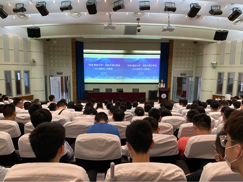 举办2022年“传承·我的大学”经验交流分享会。分享会邀请07级本科校友、现任南水股份智慧水务分院BIM中心主任徐海峰,07级本科校友、现任格兰富水泵(上海)有限公司一数字水务业务发展经理刘飞宏,17级本科学姐王慧主讲。22级全体本科新生参与本次会议。会议由22级辅导员姜帆主持。