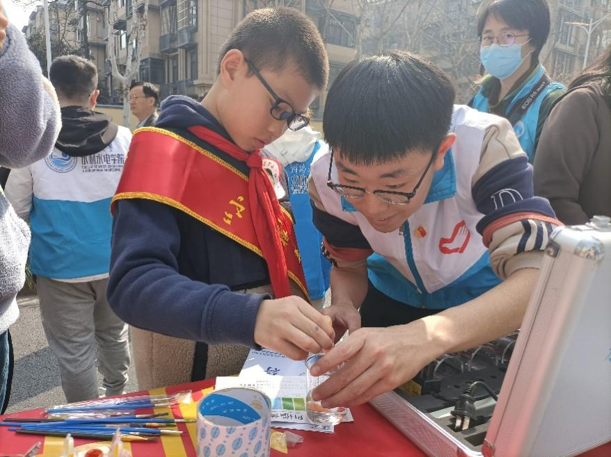 为认真学习宣传贯彻党的二十大精神和习近平总书记对深入开展学雷锋活动的重要指示精神,污漫 于3月4日在西康路校区开展“学雷锋一条街”志愿服务活动,活动通过节水理念宣传、互动问答、手绘图画、水质检测等方式,吸引了来自宁海路街道居民、力学小学三(四)中队的队员、在校师生以及留学生们的热情参与和关注。