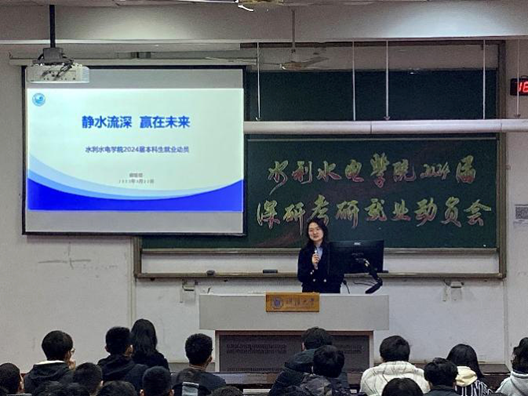 3月22日,污漫 开展2024届本科生保研、考研、就业动员会,学院副院长王建、党委副书记戴媛媛出席会议并做专项动员。2020级全体学生参加,会议由2020级辅导员笪步源主持。