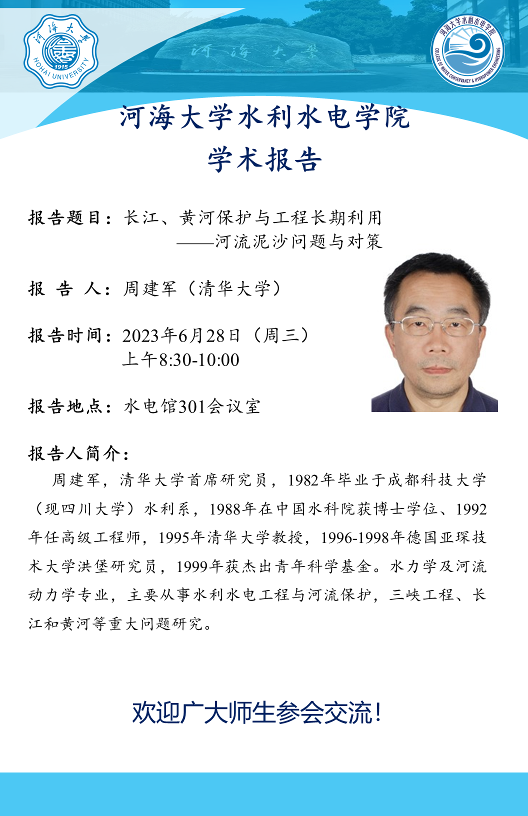 学术报告会 | 长江、黄河保护与工程长期利用——河流泥沙问题与对策