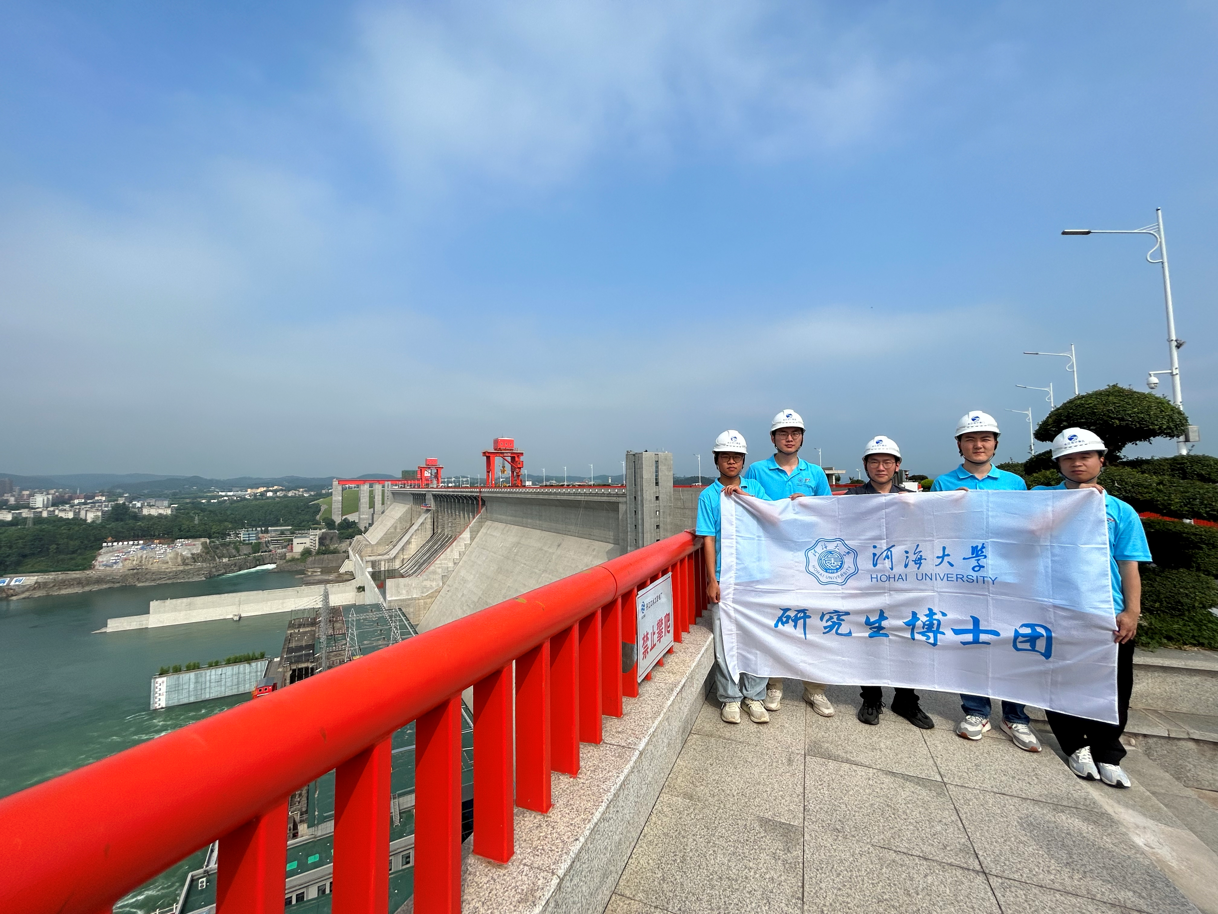 座谈交流后,博士团前往南水北调中线水源地丹江口大坝调研,回溯了丹江口大坝加高工程中面临的新老坝体联合承载难题以及相应的“后帮有限结合”加高处理方式,深切感受工程建设中积淀的技术成果和结构设计理论的创新发展。博士团一并参观了丹江口大坝自动化监测及数字孪生系统,同长江设计集团空间公司工程师就数字大坝的建设现状和发展前景交换了意见。