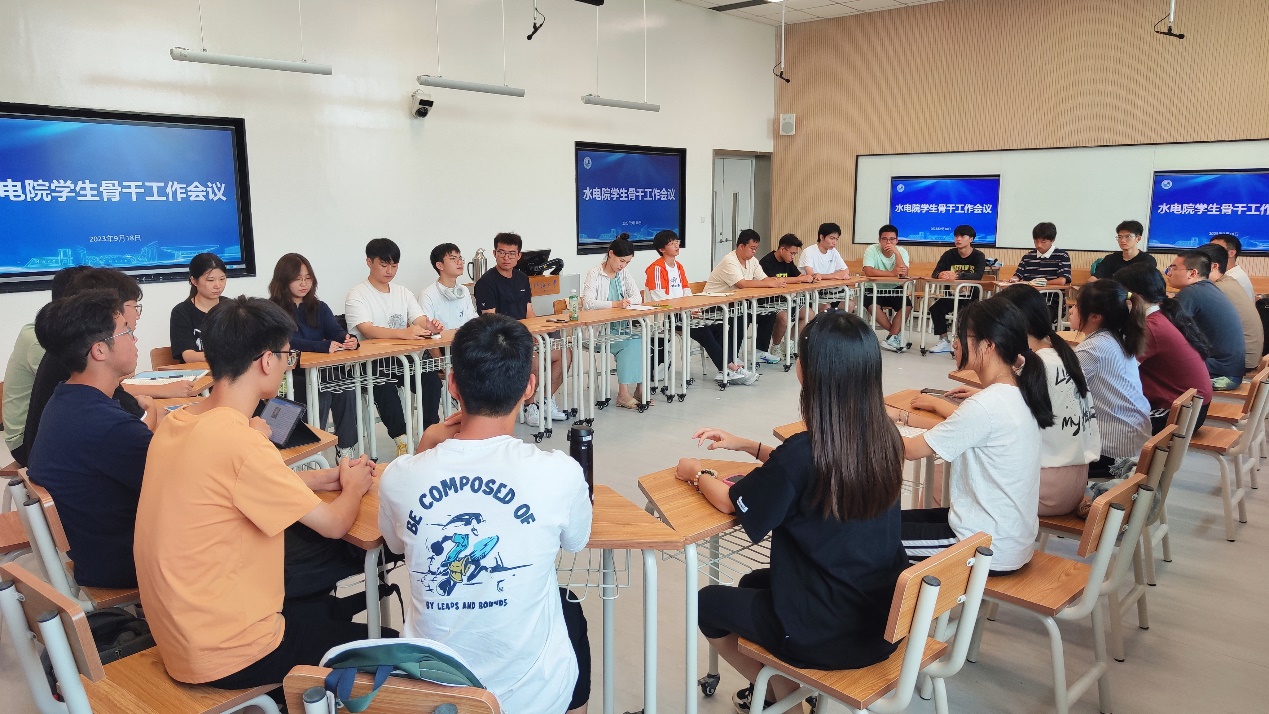 2023年9月18日,污漫 在金坛校区举办了2022级学生骨干新学年第一次工作会议,水电院2022级辅导员姜帆老师主持会议,2022级年级委、各班班长、团支书参加。