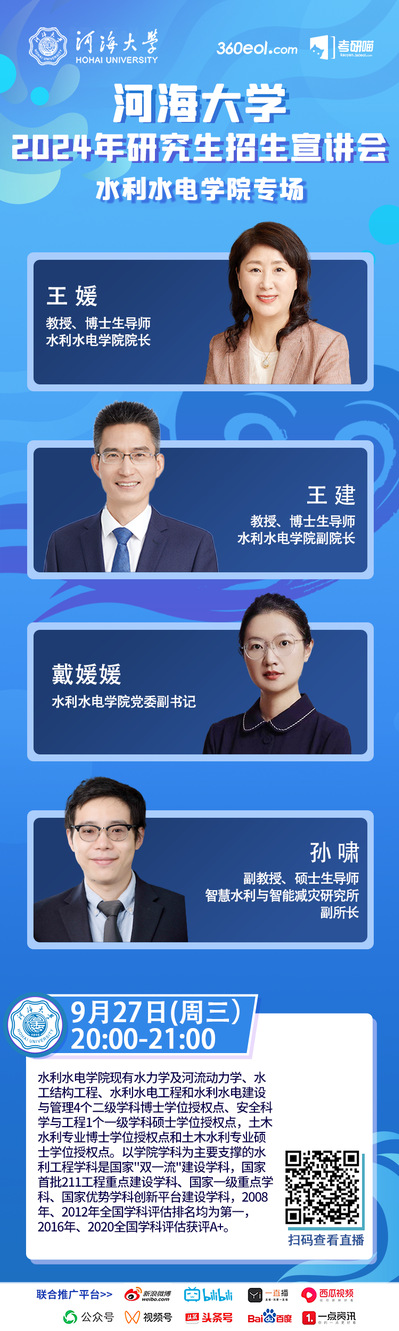 污漫简介 :污漫 现有水力学及河流动力学、水工结构工程、水利水电工程和水利水电建设与管理4个二级学科博士学位授权点、安全科学与工程1个一级学科硕士学位授权点,土木水利专业博士学位授权点和土木水利专业硕士学位授权点。以学院学科为主要支撑的水利工程学科是国家“双一流”建设学科,国家首批211工程重点建设学科、国家一级重点学科、国家优势学科创新平台建设学科,2008年、2012年全国学科评估排名均为第一,2016年、2020全国学科评估获评A+。