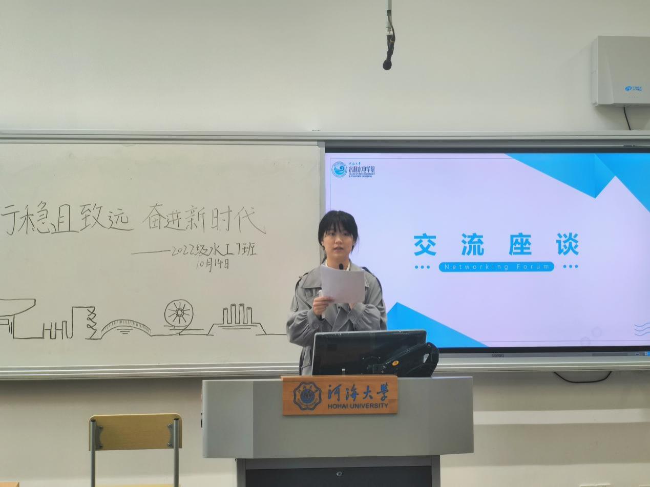 党委副书记戴媛媛出席班会,团支书唐伊主持班会,2022级水利水电工程7班全体同学参加。