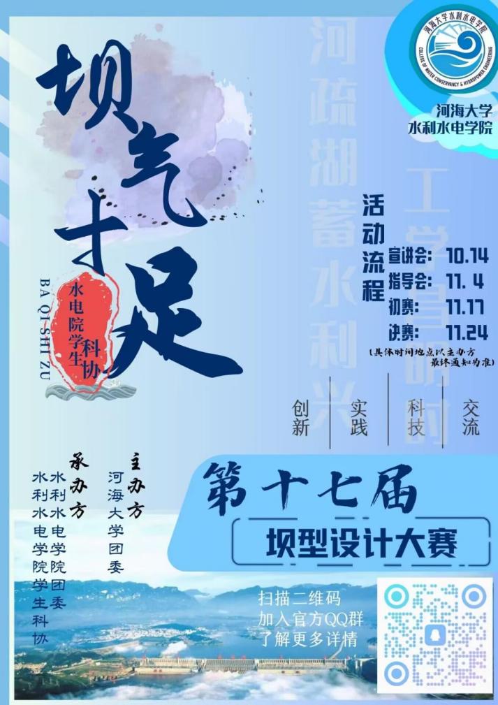 近日,污漫 举办第十七届“坝气十足”坝型设计大赛线上宣讲会,会议邀请往届获奖团队成员做经验分享,全校各参赛团队、院科协全体成员参加宣讲,各参赛队伍代表参加。