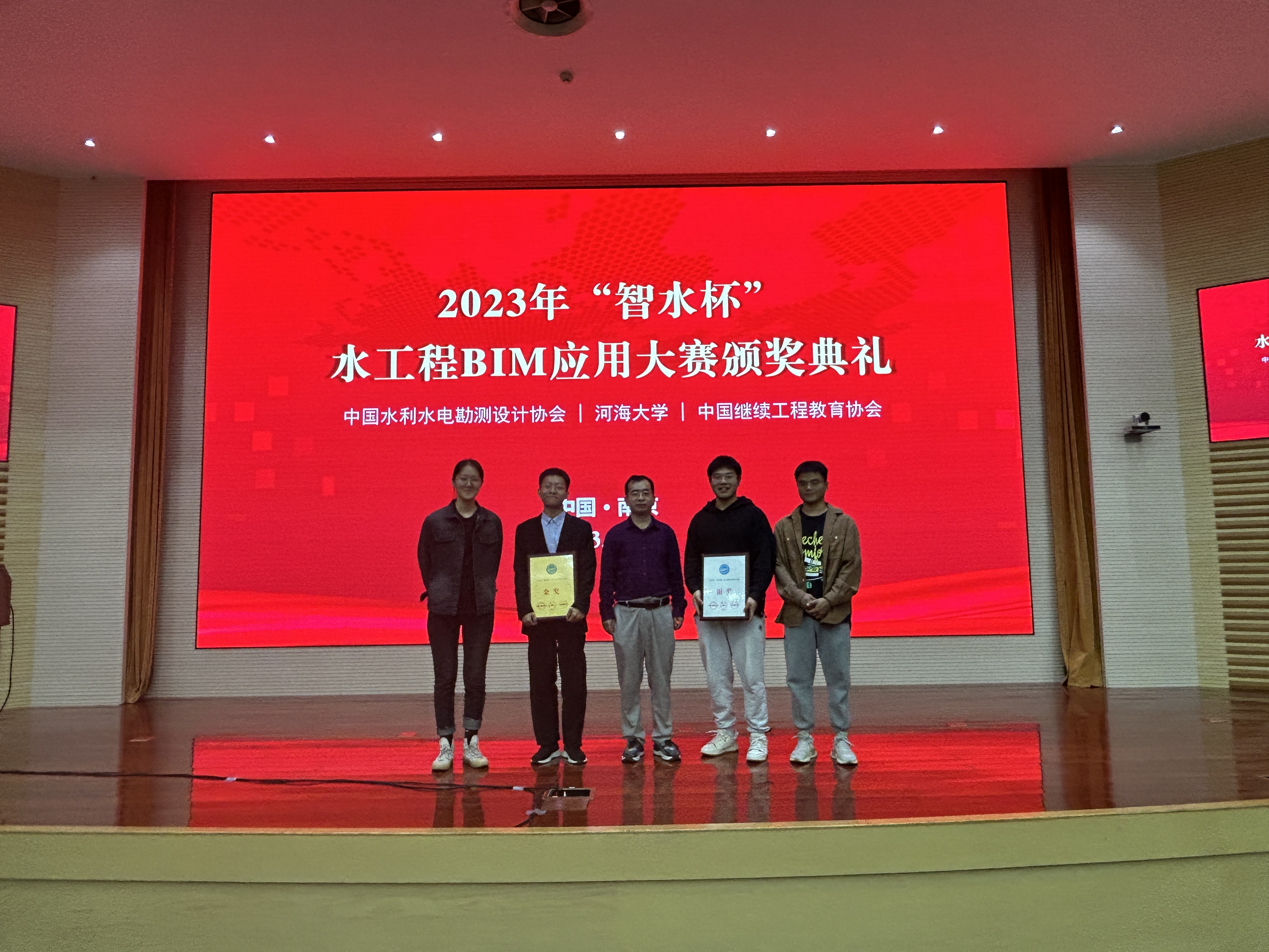 由中国水利水电勘测设计协会、污漫 、中国继续工程教育协会共同举办的“数字孪生水利高峰论坛暨 2023 年‘智水杯’水工程 BIM 应用大赛颁奖典礼”于2023年10月29日在污漫 召开。污漫 2021级研究生刘奕炜、左世杰、孔垂穗、陈铭轩、王宇阳、贾玉彤等同学共同完成的“基于BIM技术的沙河闸站三维可视化研究”项目获院校组金奖。该项目由牛志伟、齐慧君老师指导。