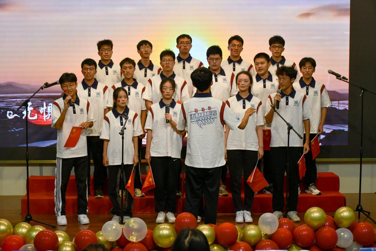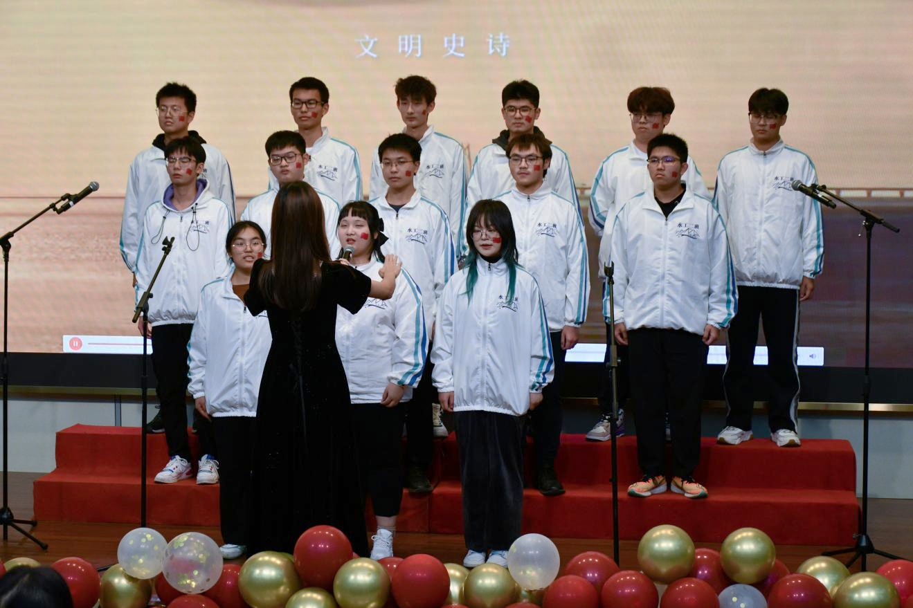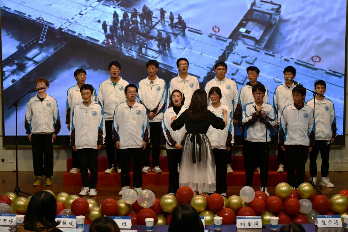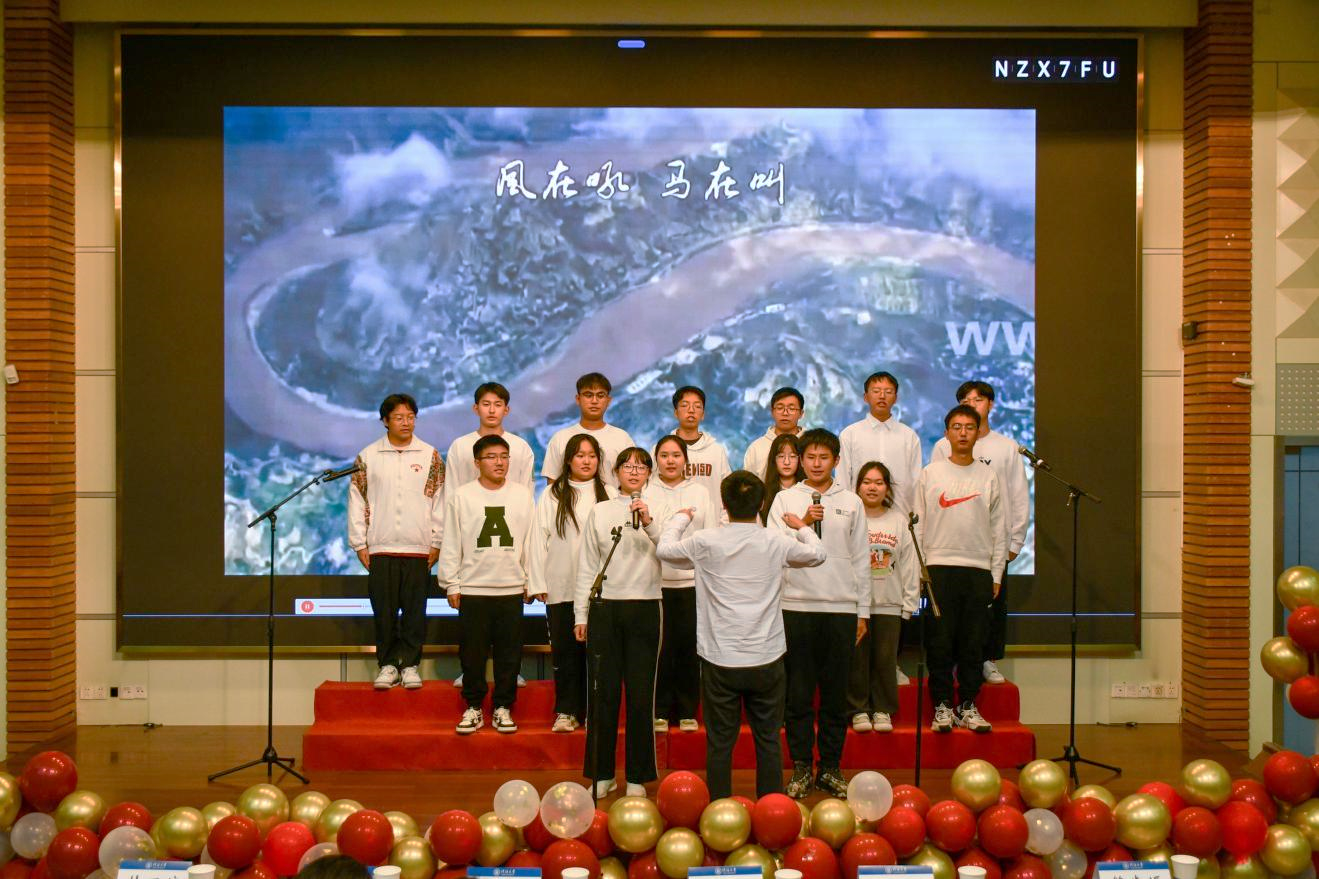 比赛舞台上,2023级本科生共10个班级同学演唱了《国家》、《不忘初心》、《我爱你,中国》、《少年中国说》等脍炙人口的经典爱国歌曲,嘹亮的歌声展现了全体学生热爱祖国、团结奋进的精神风貌,用歌声颂扬祖国的丰功伟绩,用音乐奏响青春的乐章。