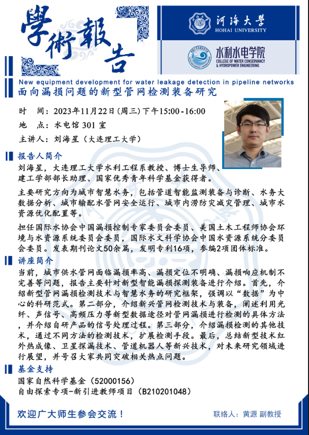 学术报告会 |面向漏损问题的新型管网检测装备研究