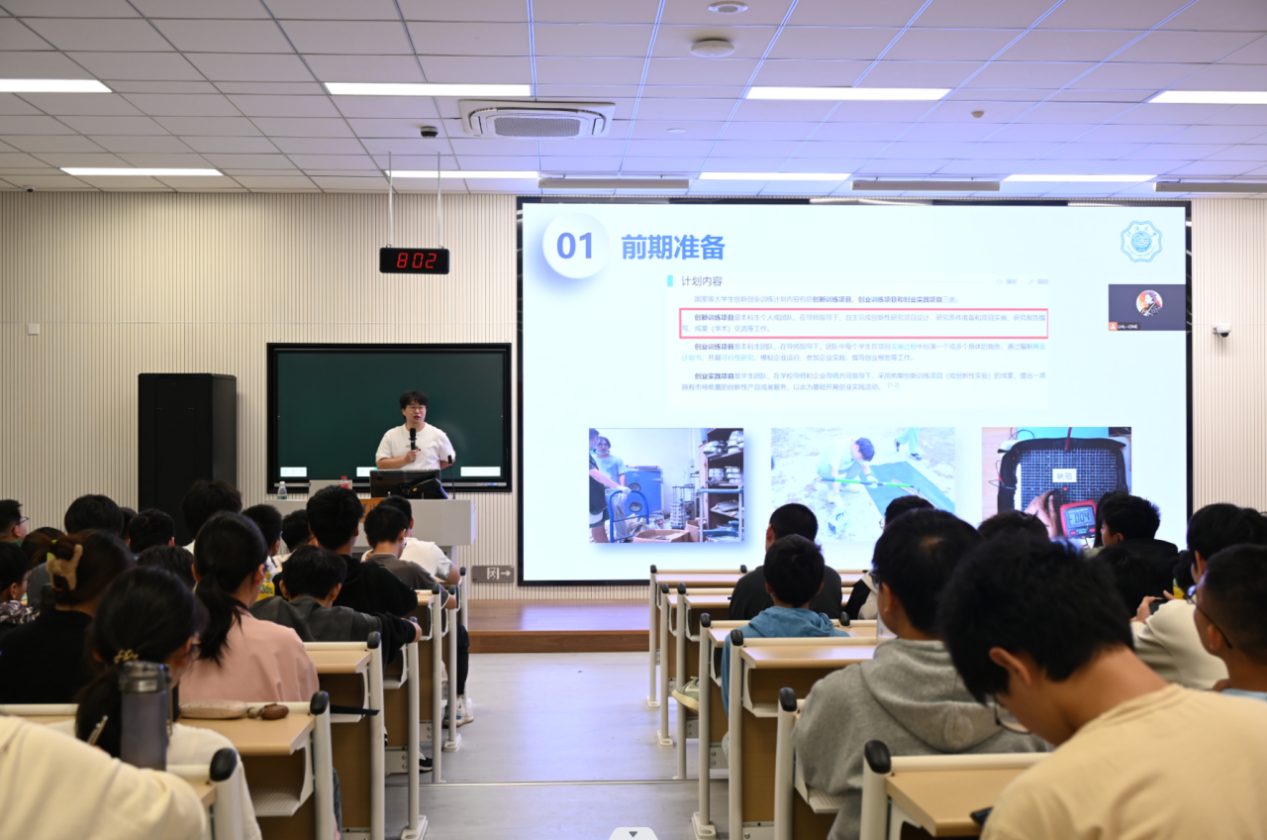 袁志鹏同学从创训整个过程环节出发,结合自身经验,全方位,多角度地分享创训过程中可能需要的方法和技能,从项目申报书的撰写技巧,到答辩PPT的制作建议,再到实验开展时的过程指导。他提到,对于本科生而言,创训的最终目的是培养自己的科研思维,提升自己的研究本领,从而成为一名满足国家社会需求的综合性人才。