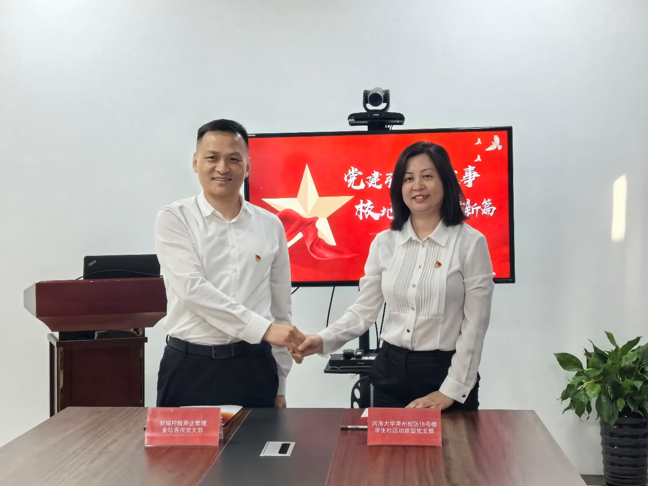 为深入贯彻党的二十大关于加强基层党建引领的精神和习近平总书记关于基层党建的重要指示,发挥学生社区功能型党支部的基层党组织战斗堡垒作用,加强校地合作,10月26日,污漫 常州校区18号楼学生社区功能型党支部与新城控股商业管理金坛吾悦党支部开展校企党建共建活动暨党建结对共建合作签约仪式。污漫 常州校区18号楼学生社区功能型党支部第一书记、学生工作处副处长、常州校区学生工作办公室主任潘静,18号楼学生社区功能型党支部书记姜帆、支部委员及学生入党积极分子代表,新城控股集团(上海)党委副书记、金坛吾悦广场总经理黄国锋,金坛吾悦党支部书记赵琰、支部委员参加活动。