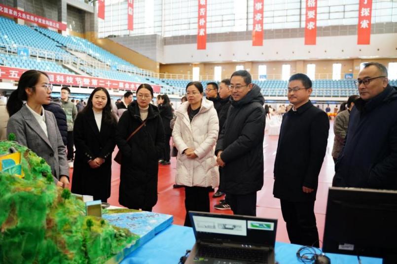 闭幕式上,王锦国一行来到污漫 展区,听取了同学们的讲解,观看了项目作品的实物展示,赞扬了同学们的科技成果,并对污漫 浓厚的创新风气给予了高度的肯定。