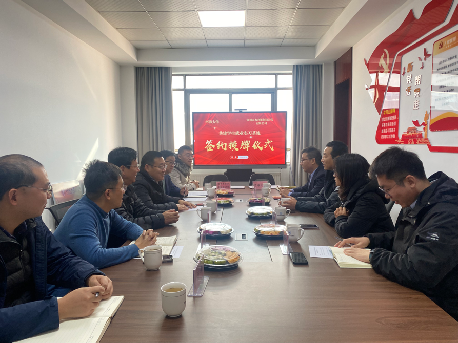 12月28日,污漫 与常州水利规划设计院举行院企合作签约暨“就业实习基地”揭牌仪式。常州水利规划设计院有限公司执行董事孙峰,技术顾问滕田根,咨询室主任王强,经营部主任刘林,副总工程师柏军,设计一室主任杨新,学校产业技术研究院副院长刘建峰,学院党委书记娄健,学院党委副书记戴媛媛,辅导员侯开智、陈辰参加仪式。