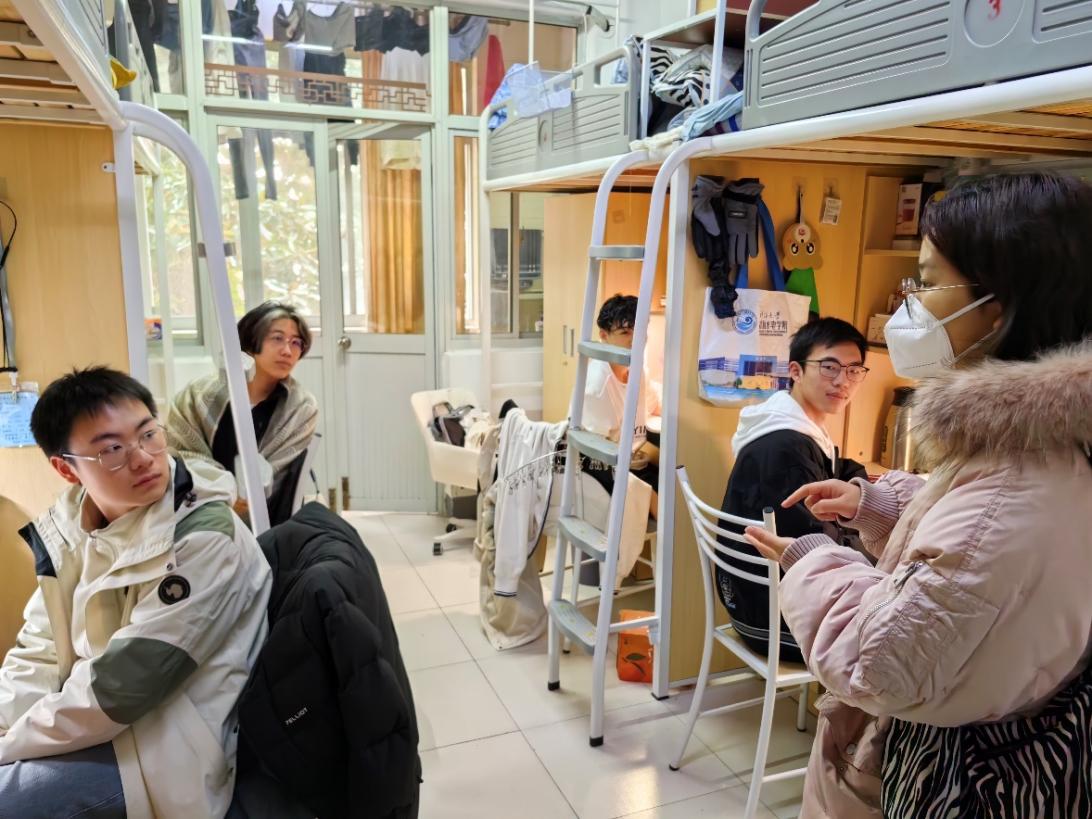 辅导员帅雨婷老师和各班班长走访宿舍进行了活动效果的第三轮跟踪,对宿舍的卫生状况进行了点评。她和每间宿舍同学亲切互动,了解同学们的生活状况,对同学们的辛勤付出表示了肯定,强调了维持日常卫生的重要性,提升了同学们的积极性。